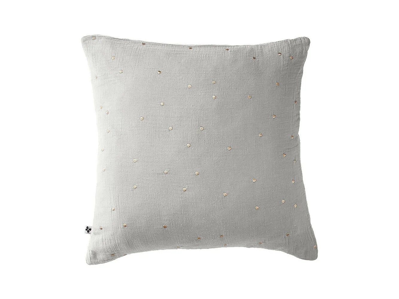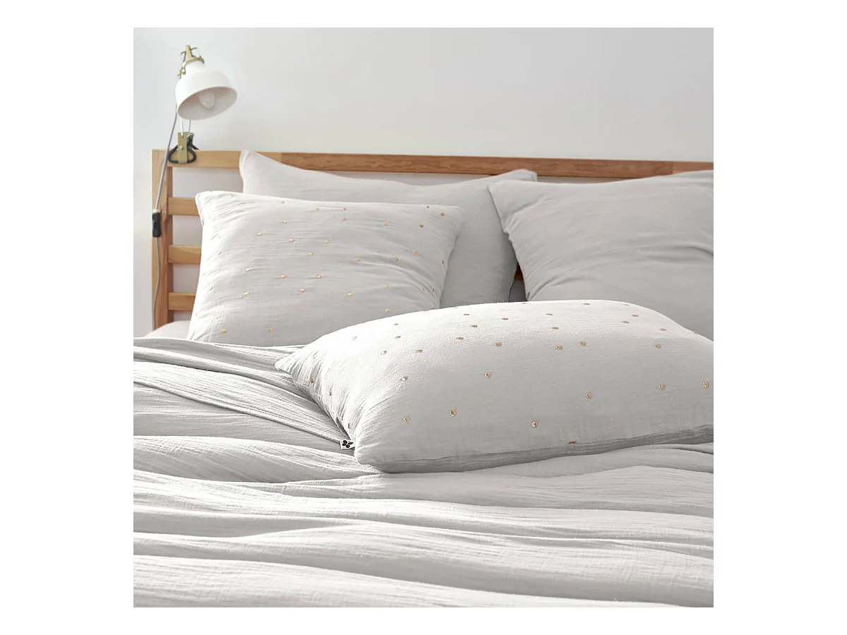 Taie d'oreiller à pois brodés double gaze de coton gris 60x60 cm