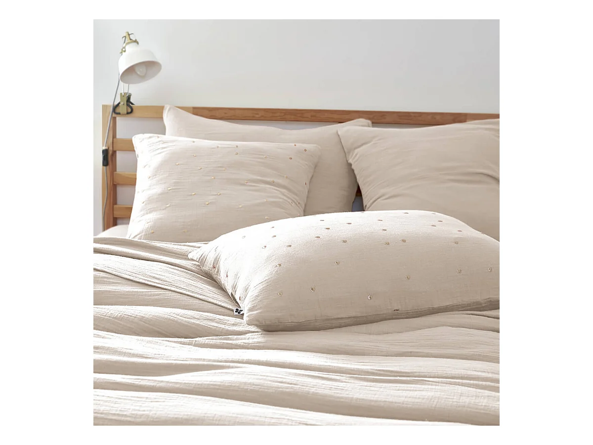OUREA MOTIF - Taie d'Oreiller 60x60cm Gaze de Coton Pampa à Pois Dorés