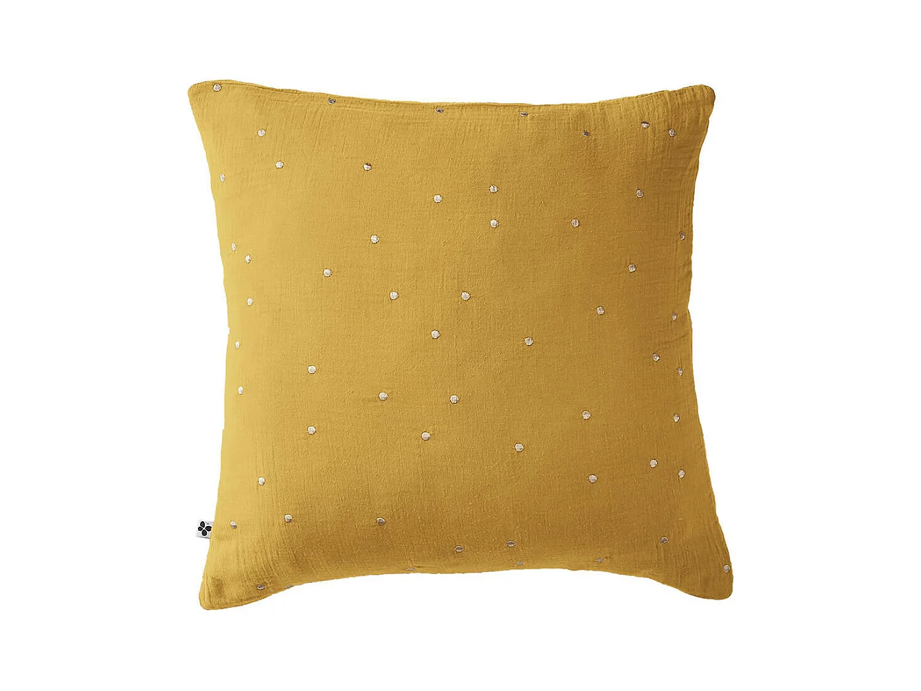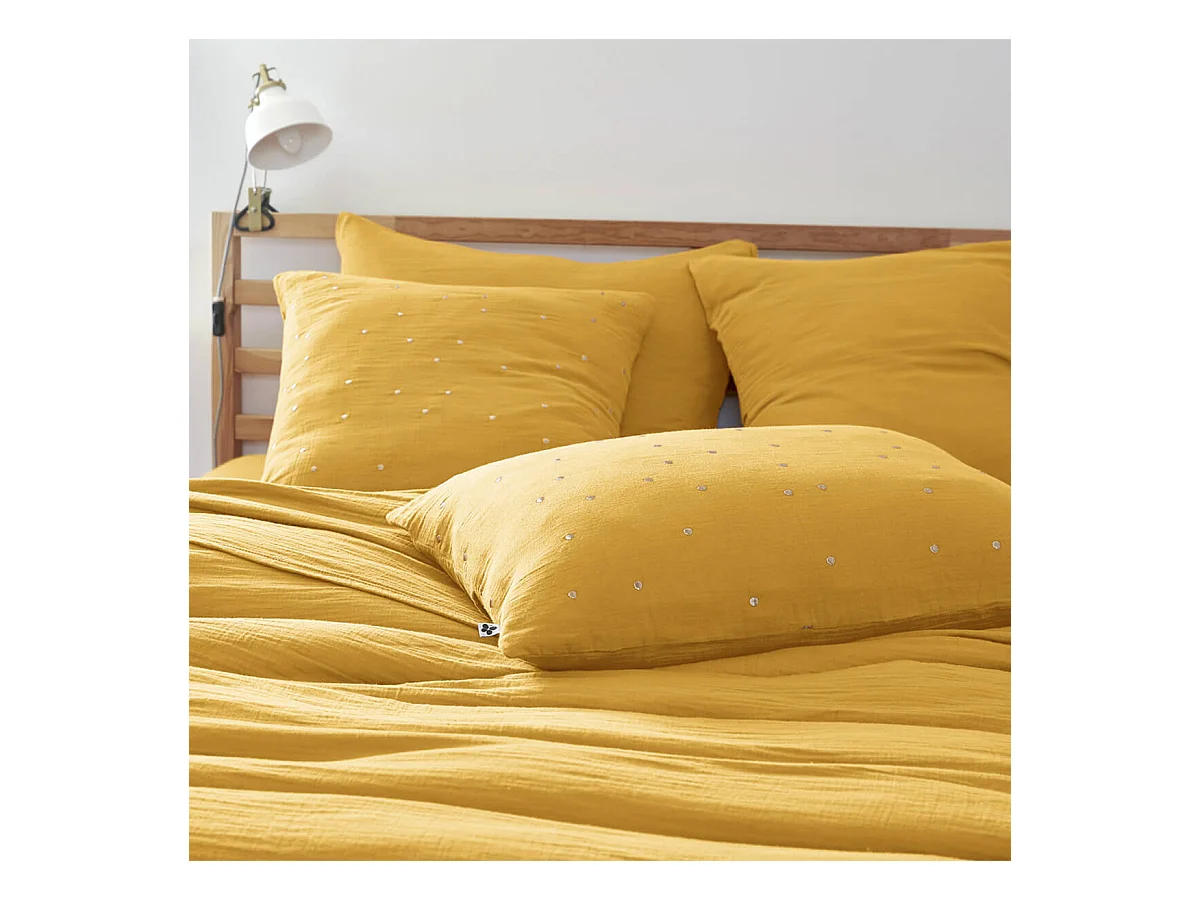 OUREA MOTIF - Taie d'Oreiller 60x60cm Gaze de Coton Safran à Pois Dorés
