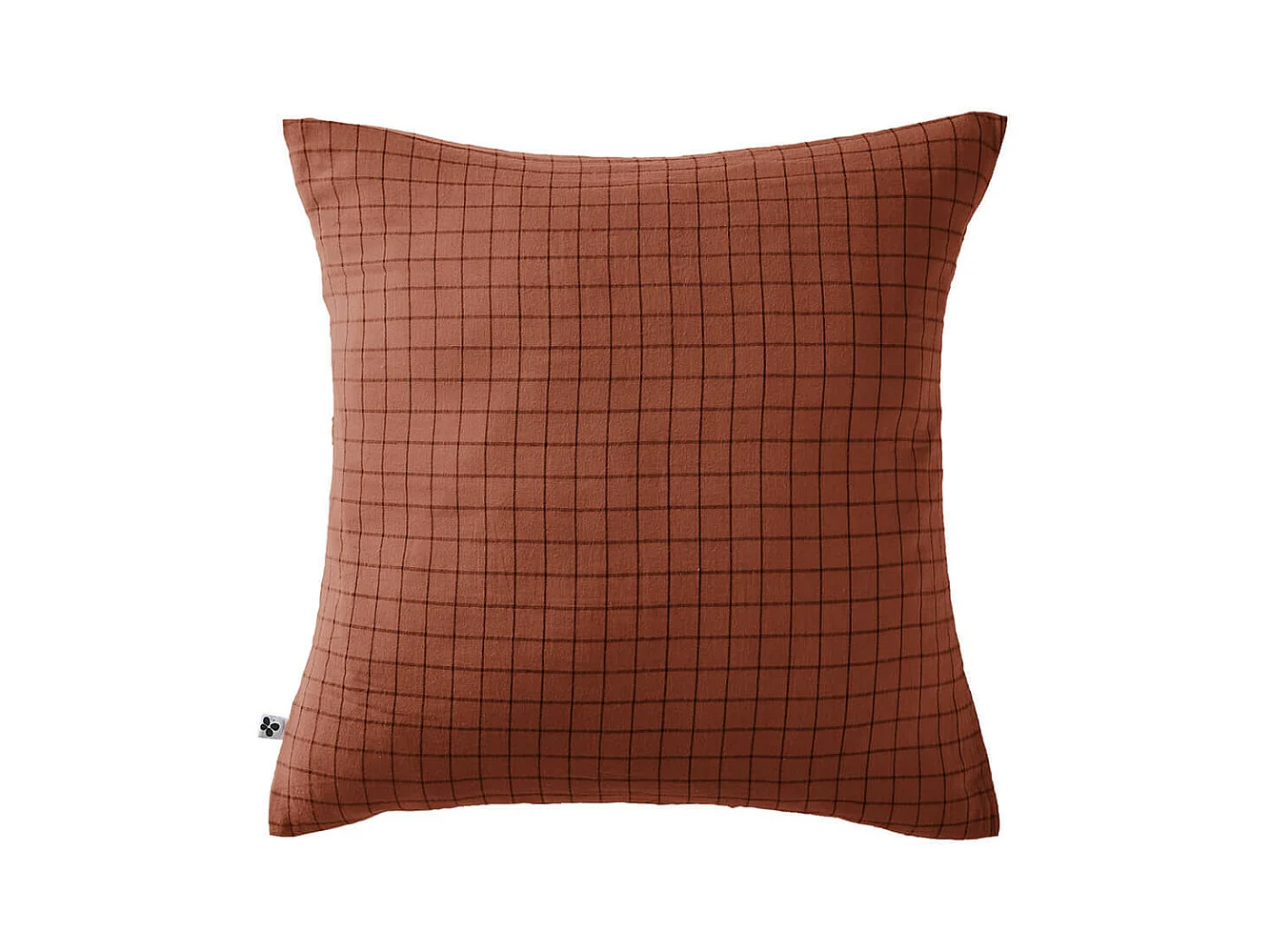 Taie d'oreiller 60x60 double gaze de coton grands carreaux terracotta Terre de Nuit