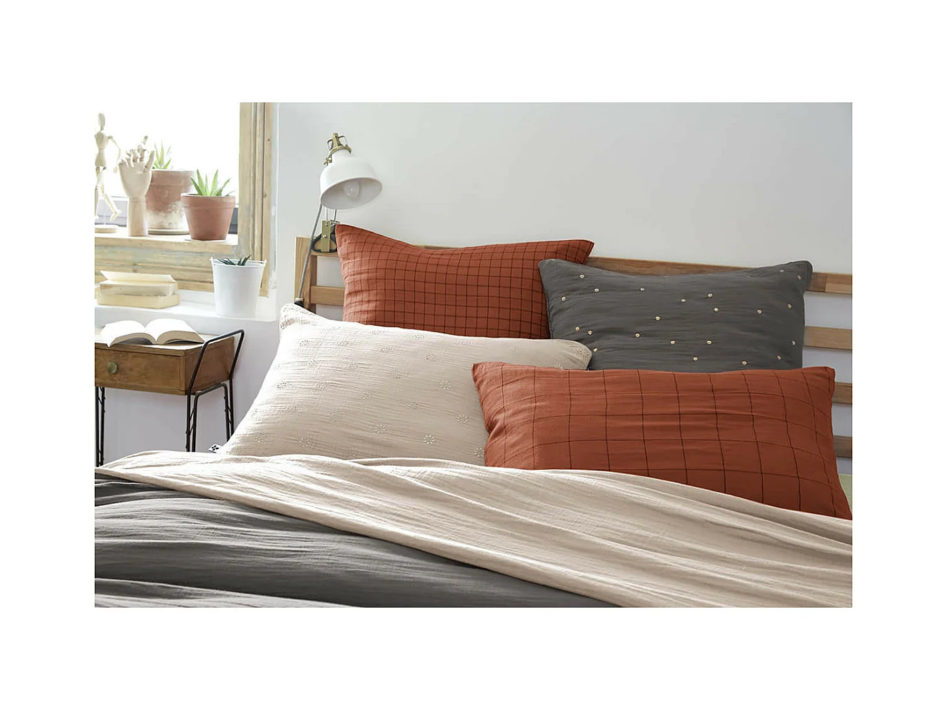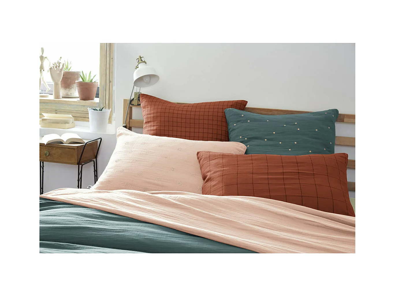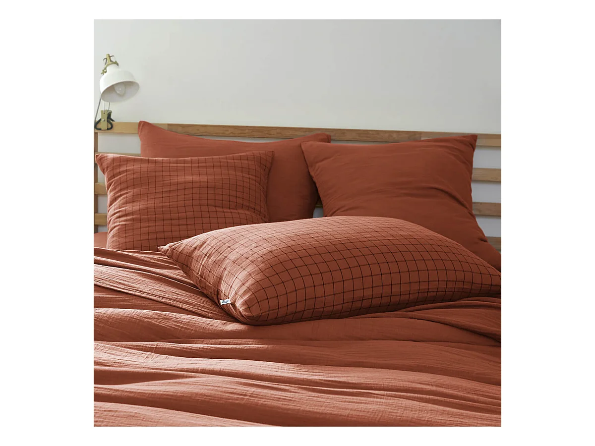OUREA MOTIF - Taie d'Oreiller 60x60cm Gaze de Coton Terracotta à Petits Carreaux