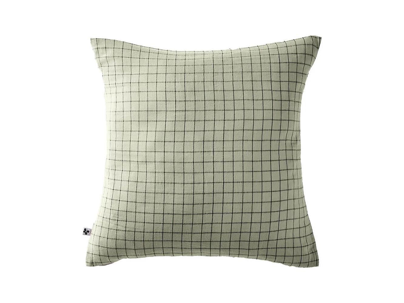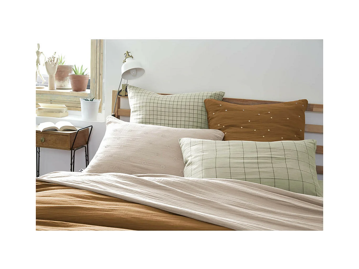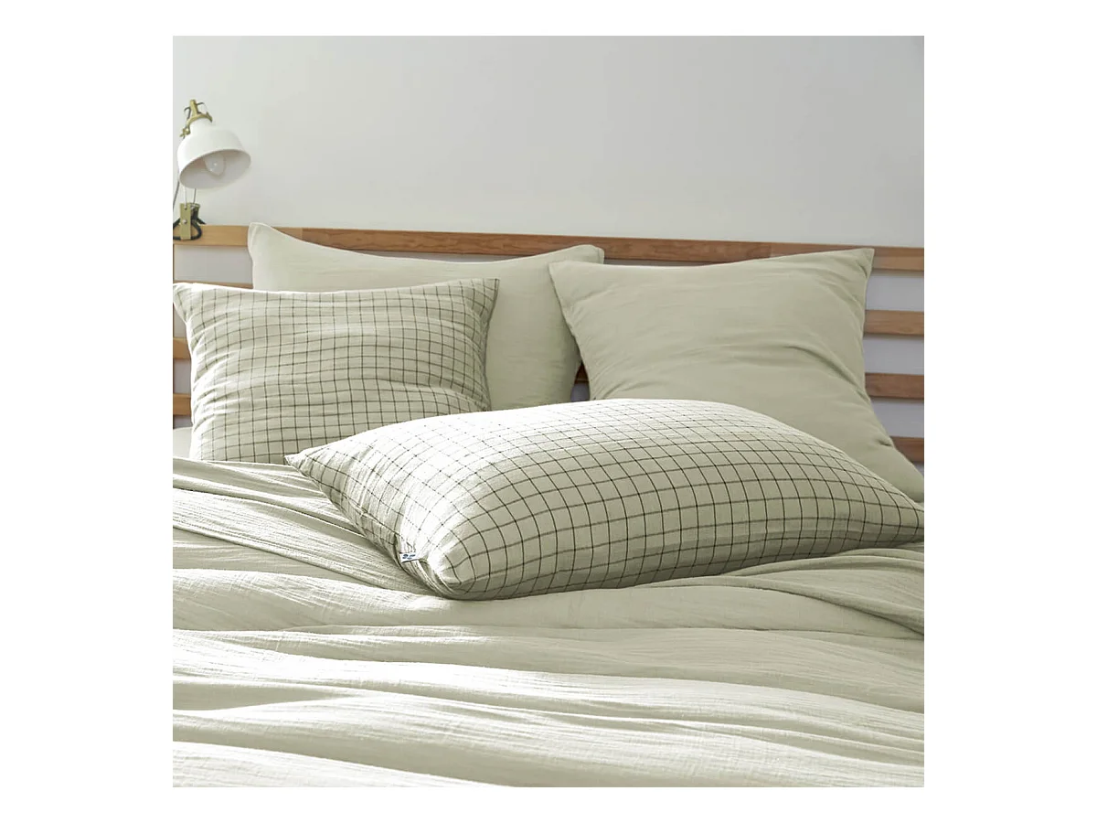 OUREA MOTIF - Taie d'Oreiller 60x60cm Gaze de Coton Vert d'Eau à Petits Carreaux