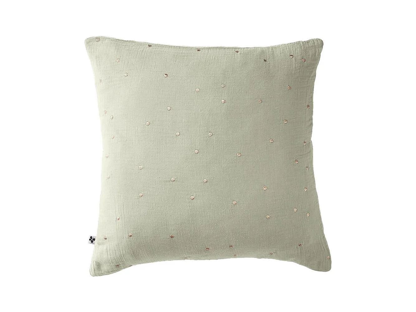 OUREA MOTIF - Taie d'Oreiller 60x60cm Gaze de Coton Vert d'Eau à Pois Dorés