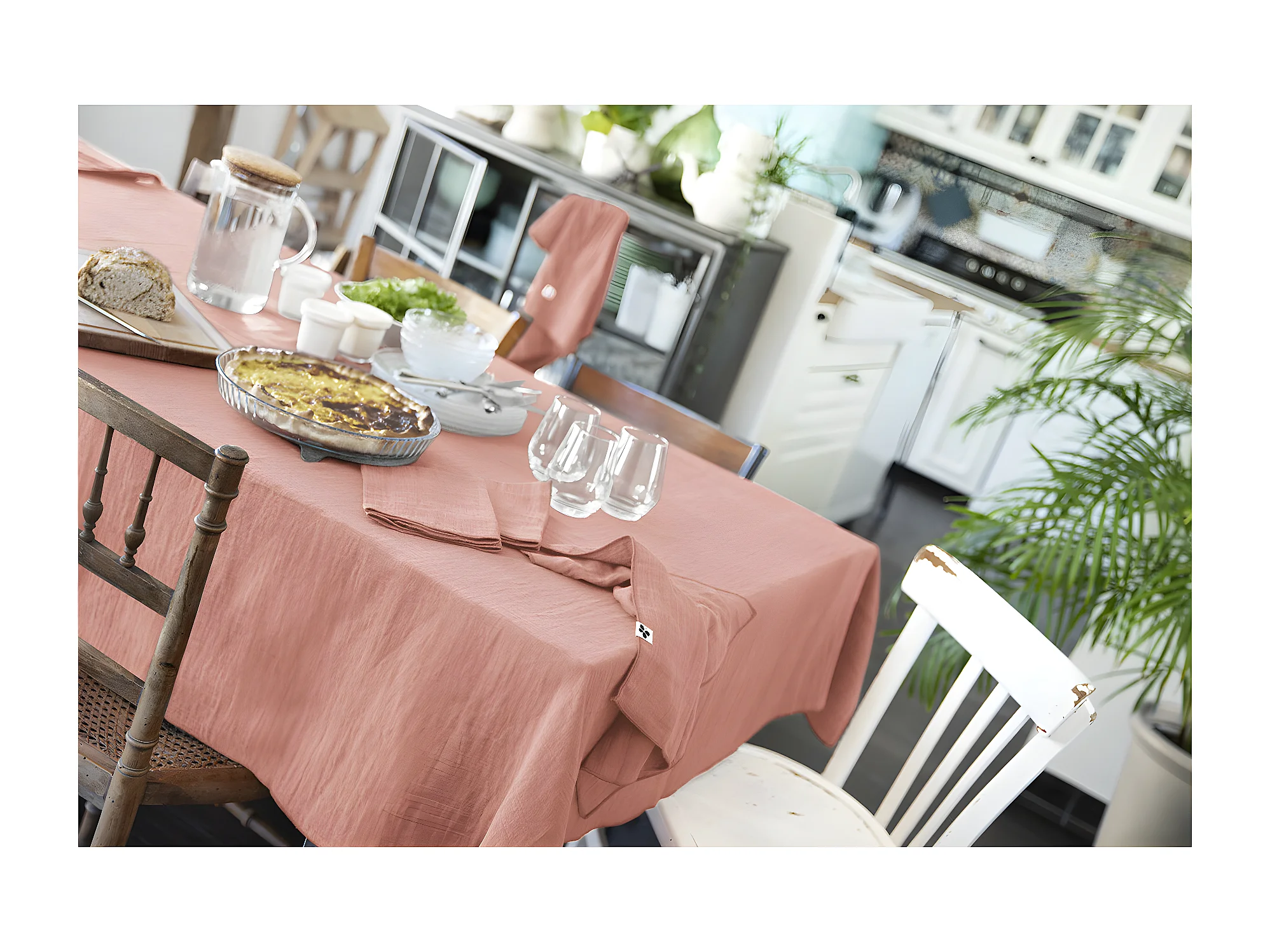 OUREA - Nappe Rectangulaire 150x250cm Gaze de Coton Rose Pêche