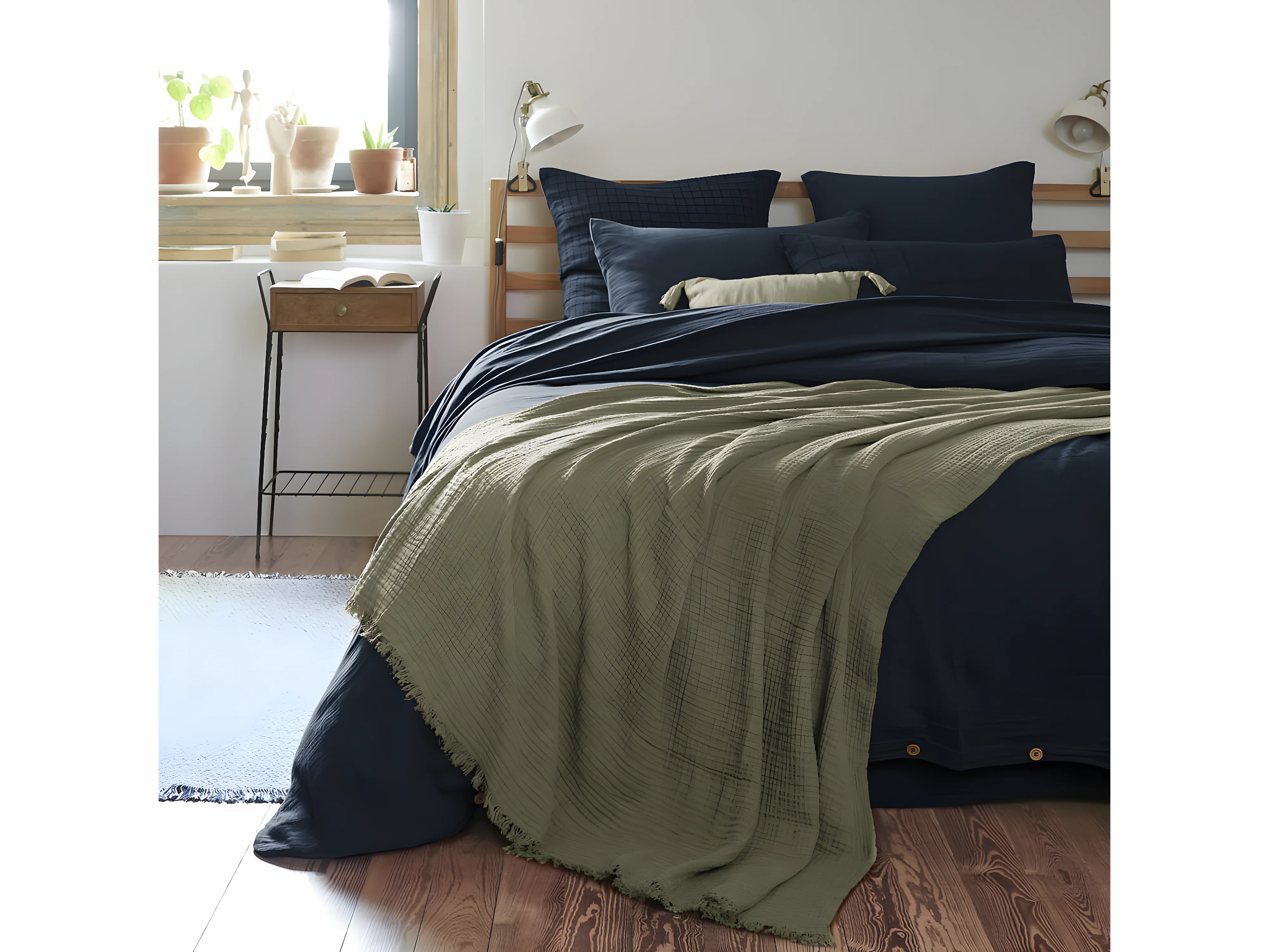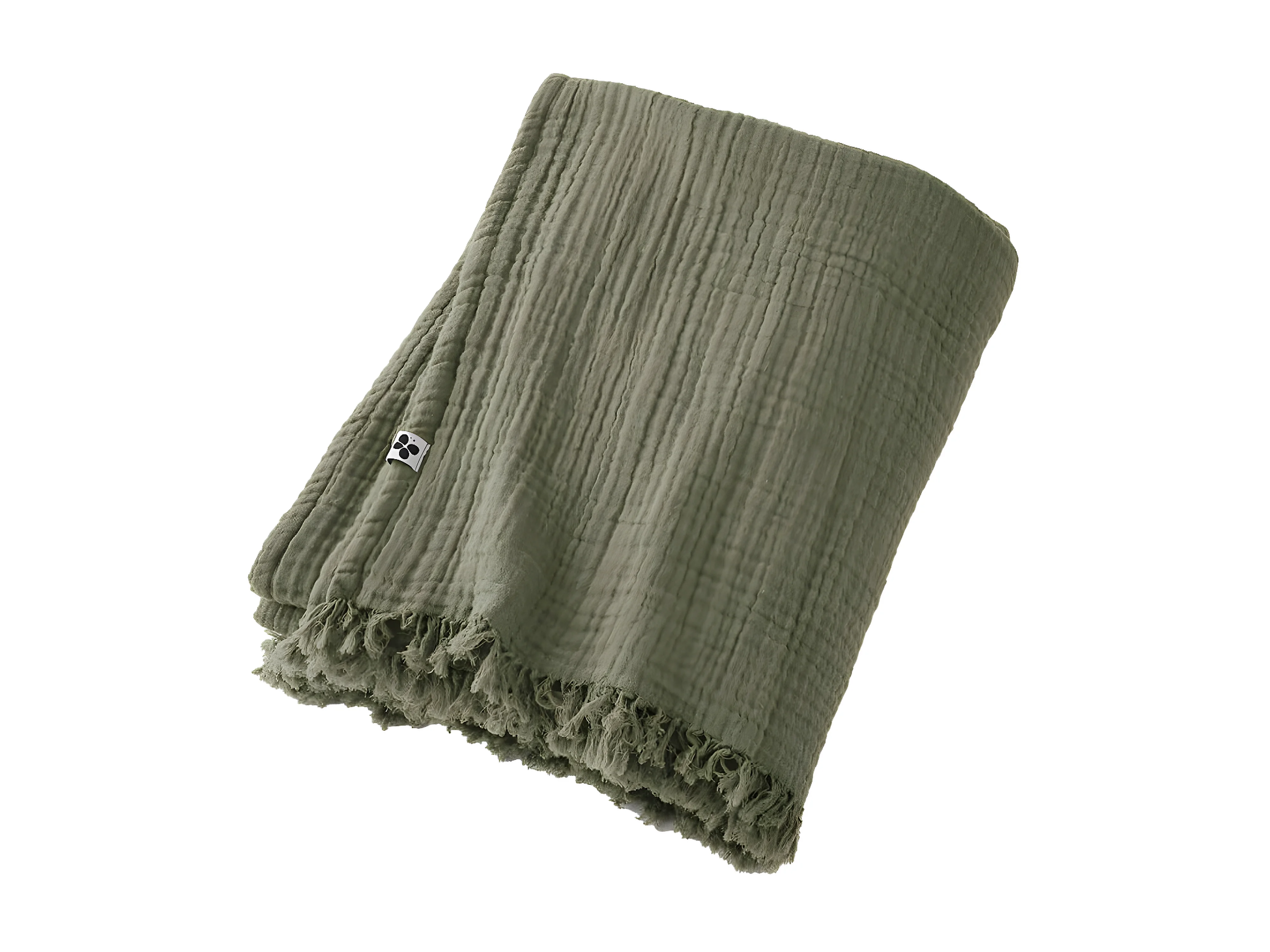 Plaid 180 x 220 cm en quadruple gaze de coton vert - PEPA 2