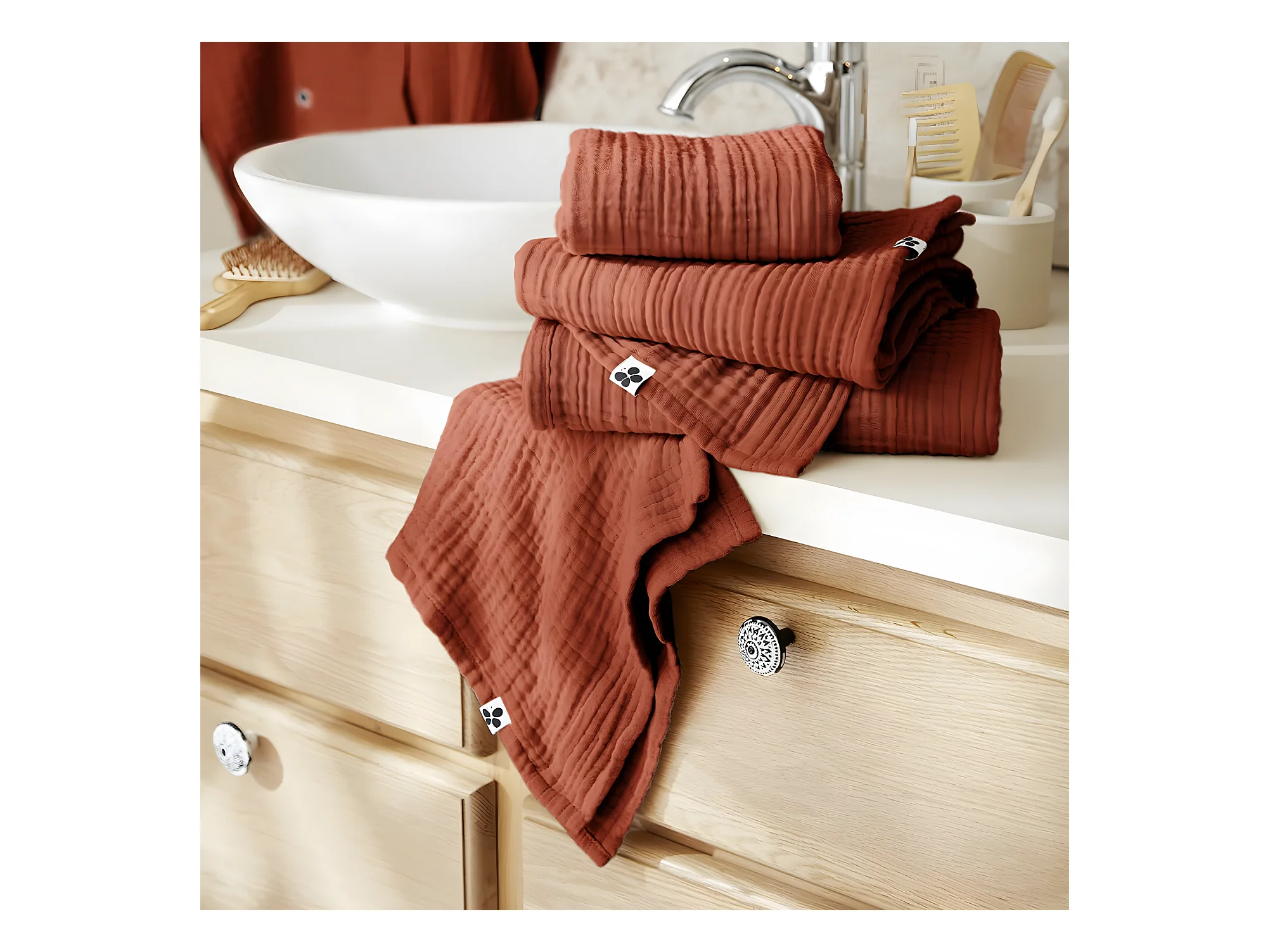 OUREA - Serviette de Toilette 50x90cm Gaze de Coton Terracotta