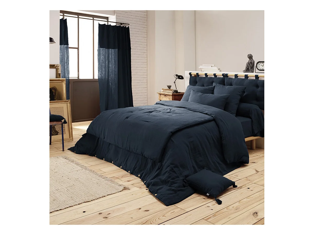 Housse de traversin L. 185 cm double gaze de coton bleu nuit - PEPA 3