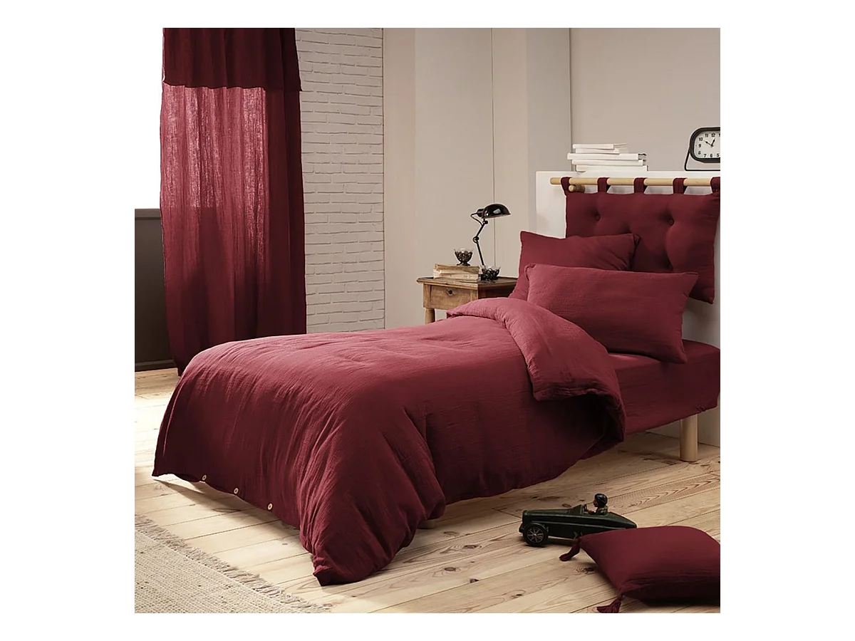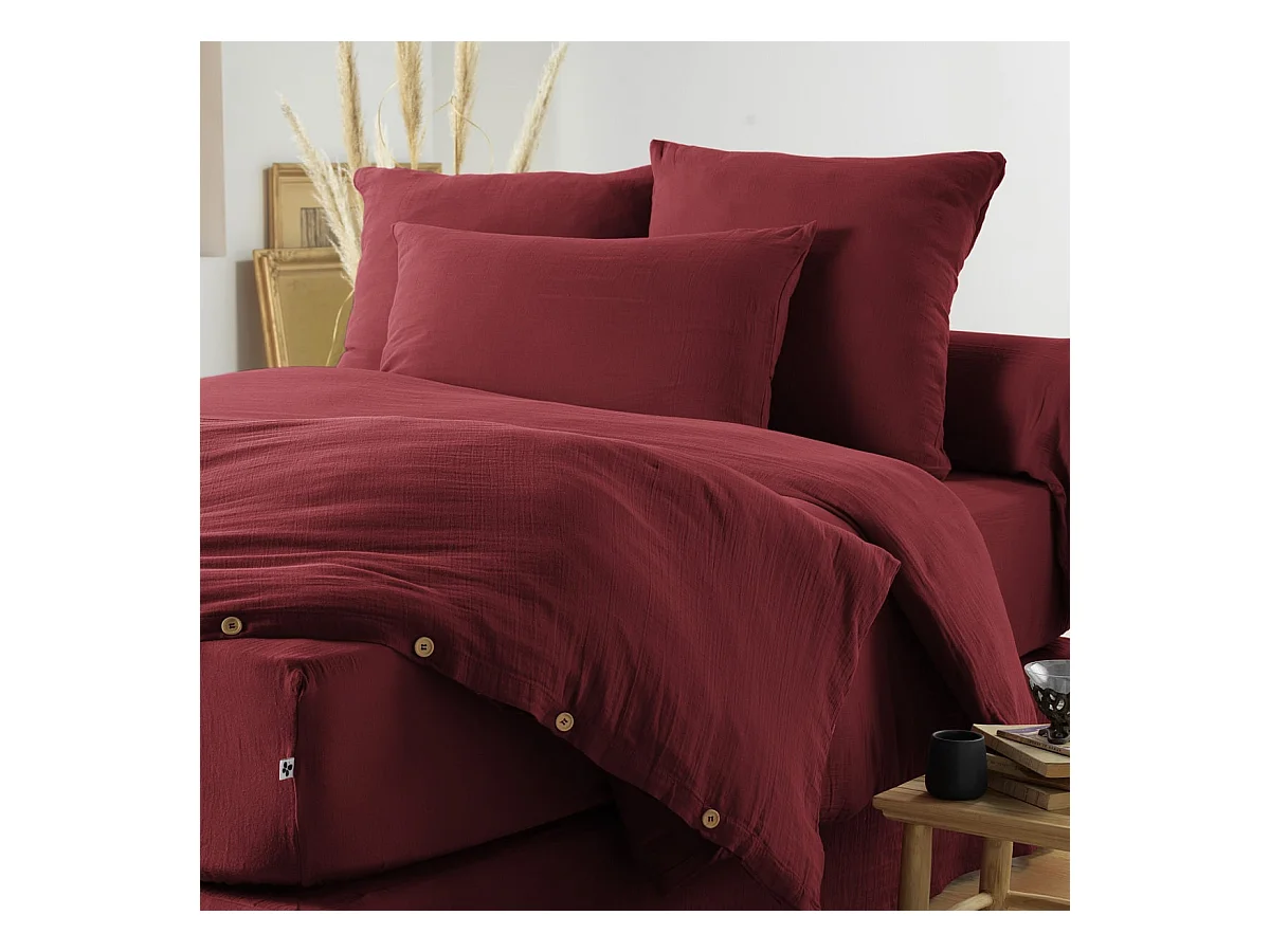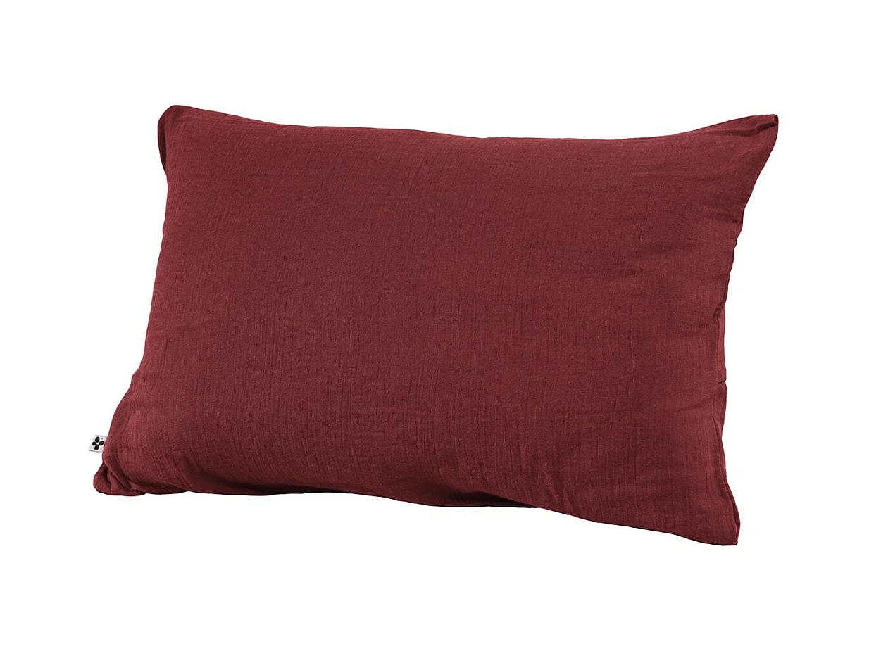 OUREA - Taie d'Oreiller 50x70cm Gaze de Coton Lie de Vin