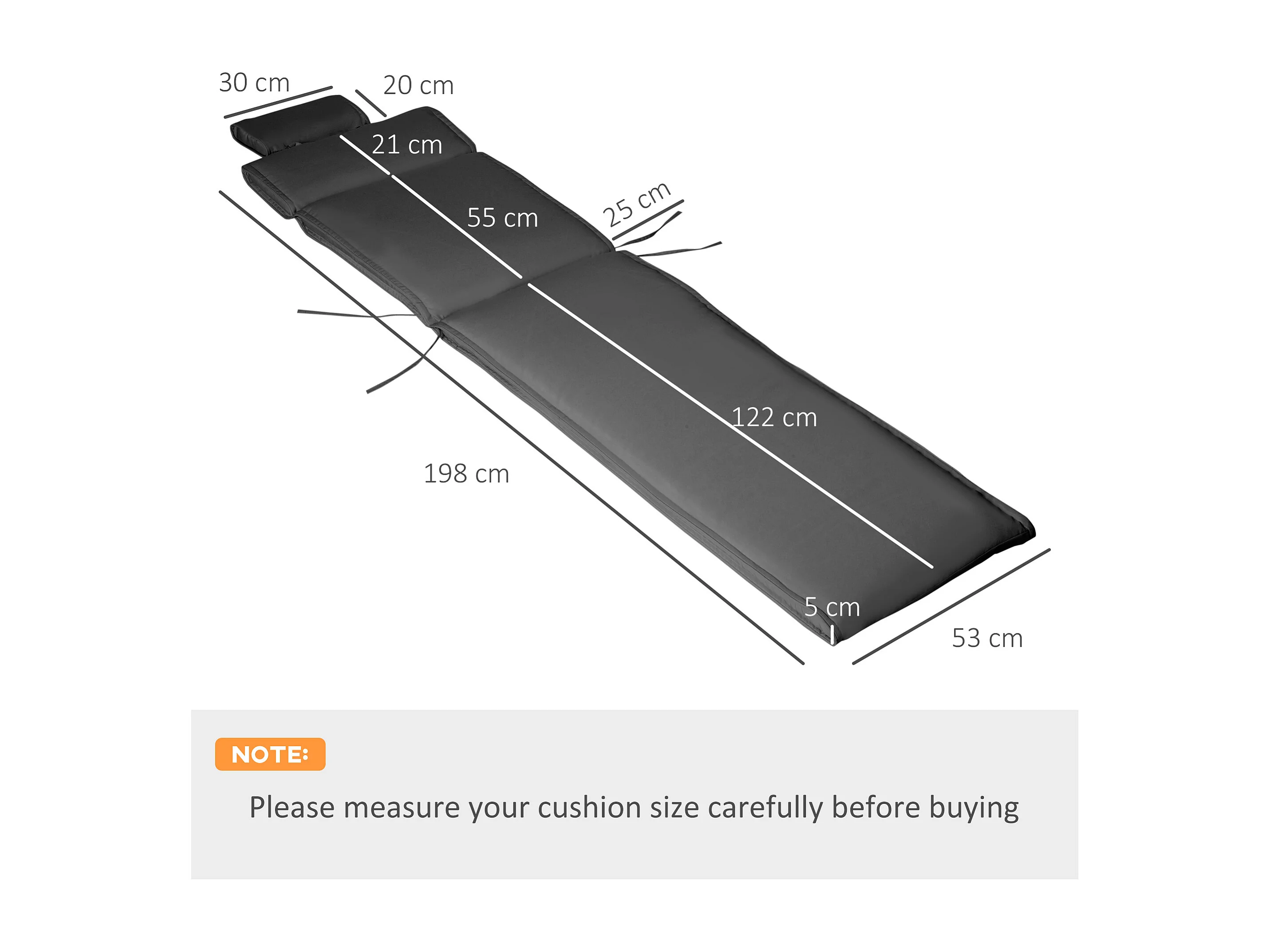 Matelas bain de soleil déhoussable - coussin de transat - matelas de chaise longue - 198 x 53 x 5 cm - tissu gris