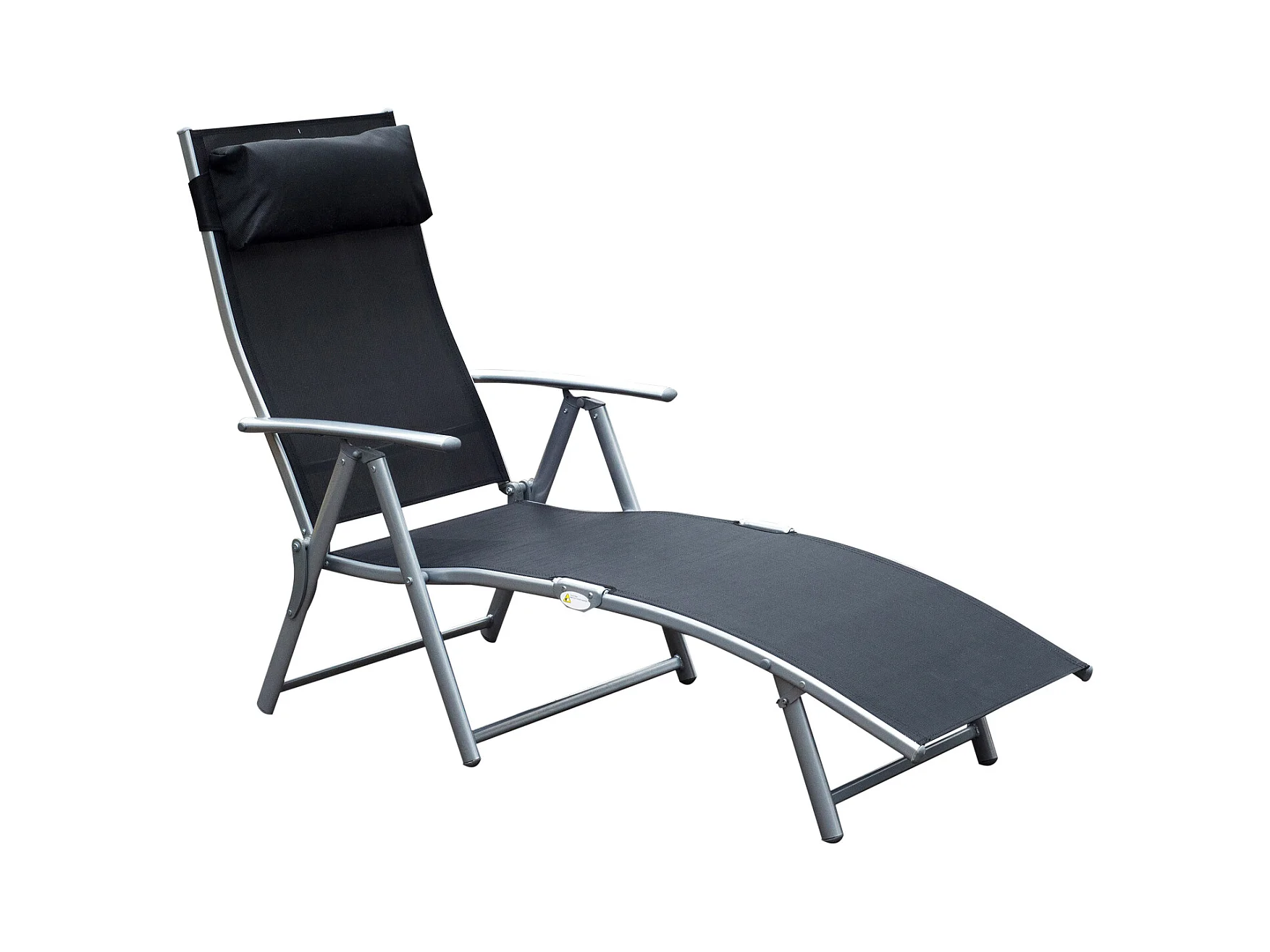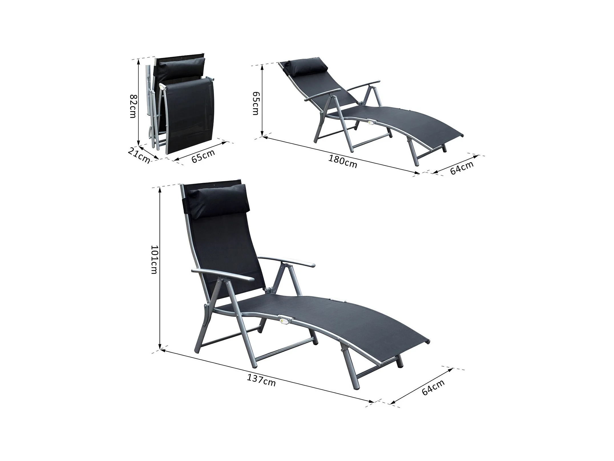 Outsunny transat chaise longue bain de soleil pliable dossier inclinable multi-positions têtière fournie 137L x 64l x 101H cm métal époxy textilène noir