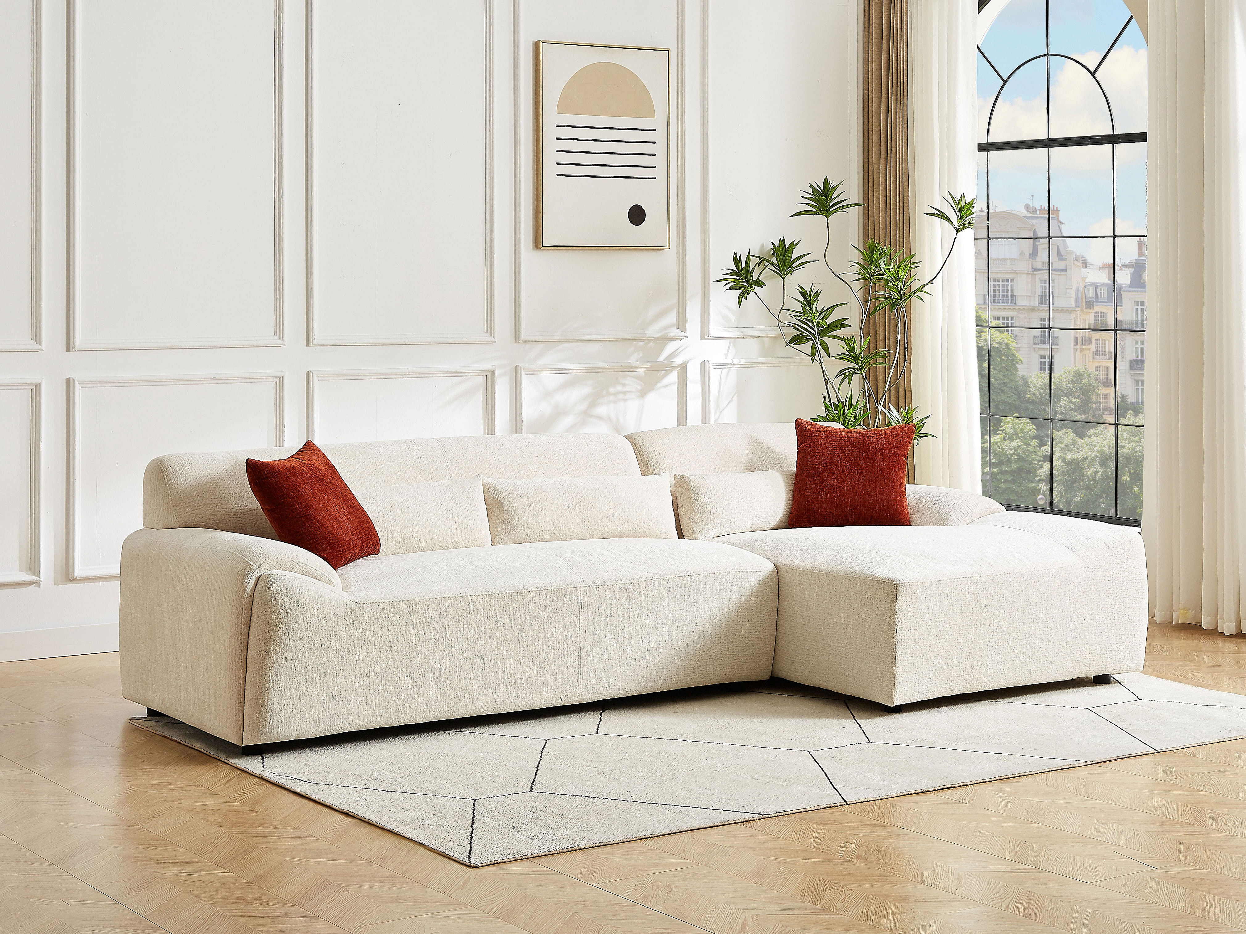 Canapé d'angle droit en tissu chenille beige OVILIO