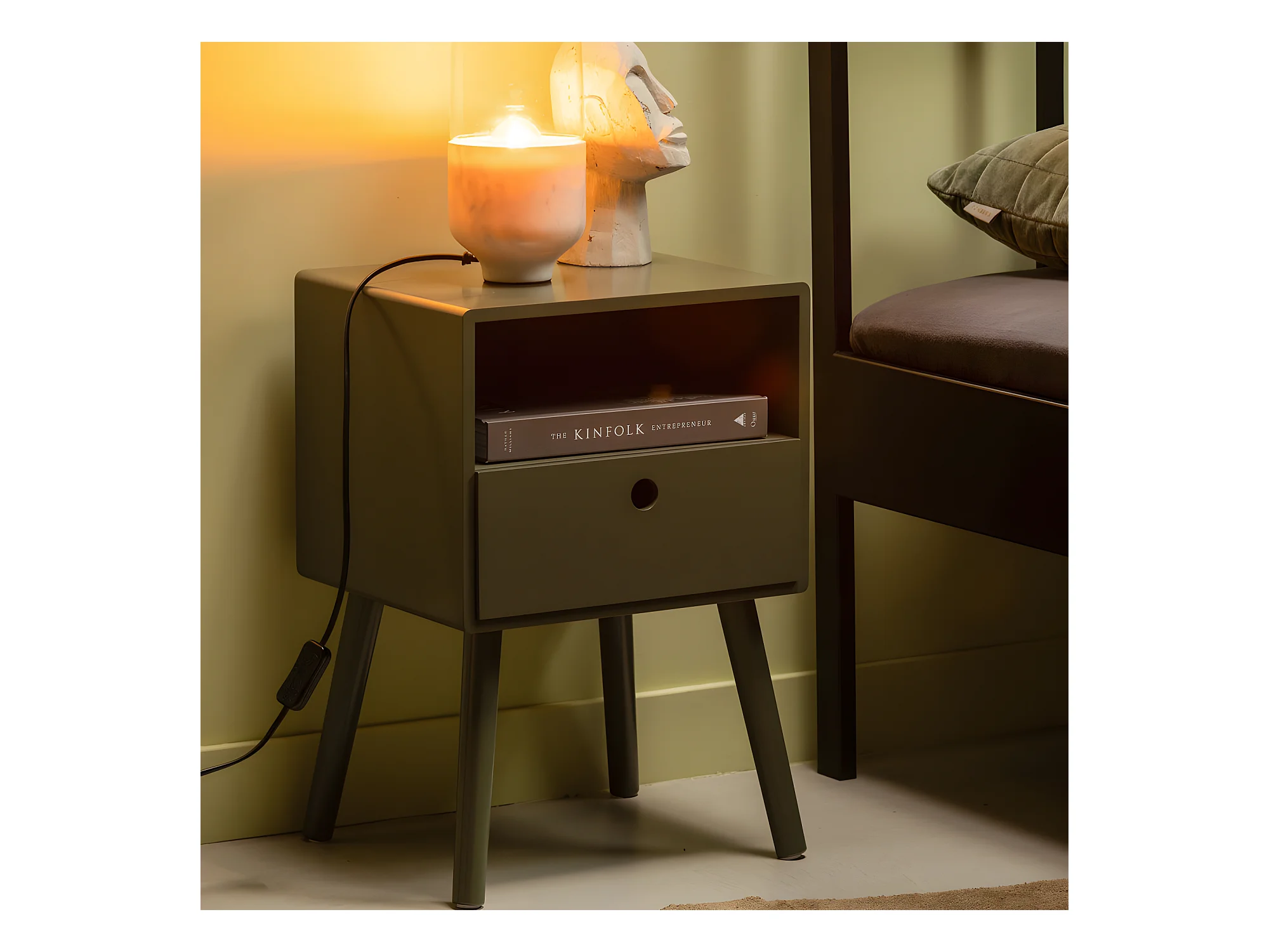 Enko - Table de chevet 1 tiroir en bois - Vert olive