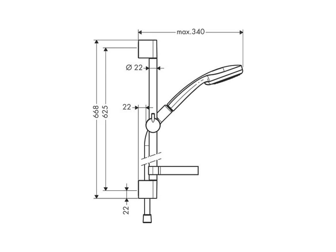 Ensemble support mural et douchette 1jet avec flexible de douche 160 cm chromé Hansgrohe Croma 100