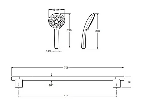 Pommeau de douche VITRA Master avec barre, porte savon et flexible