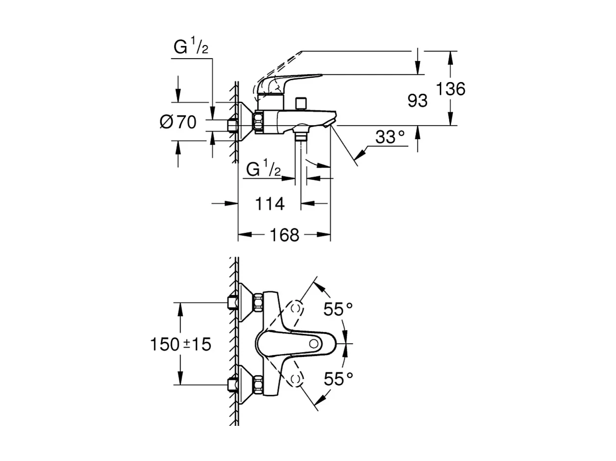Mitigeur bain mécanique GROHE Bauloop avec ensemble de douche GROHE Vitalio Start avec colonnettes