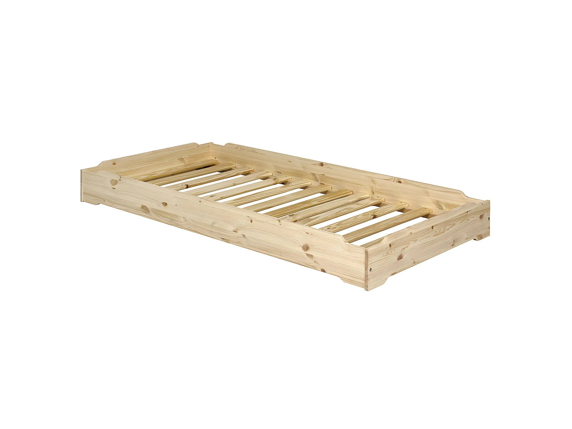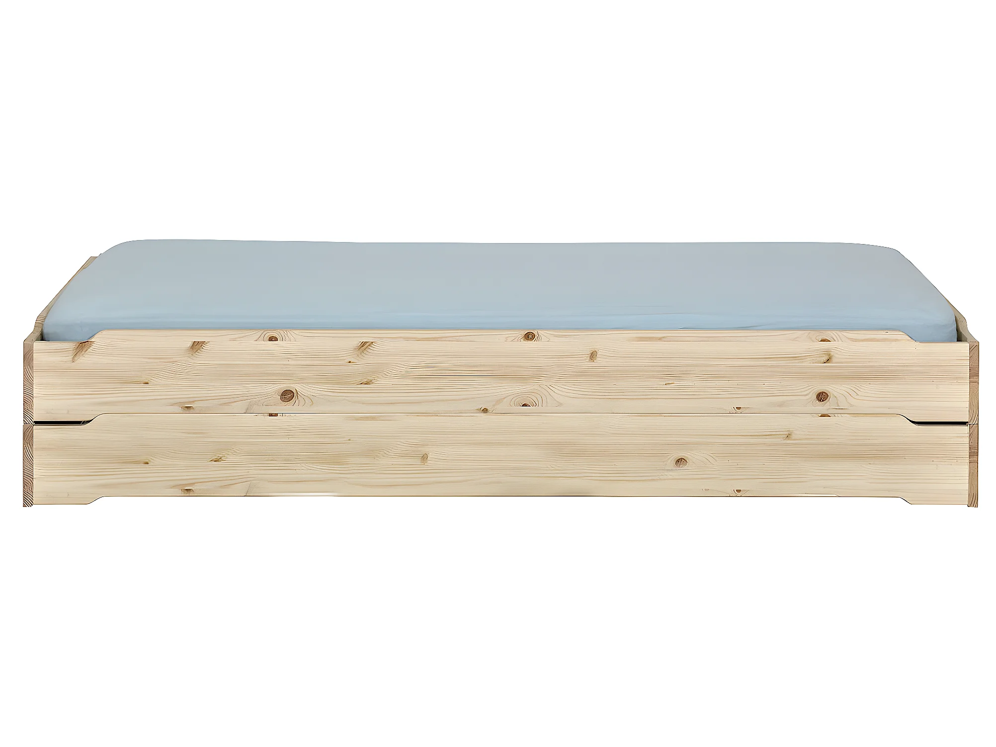 Pack 2 lits empilables et 2 matelas 90x190 cm bois massif bois naturel JELLY