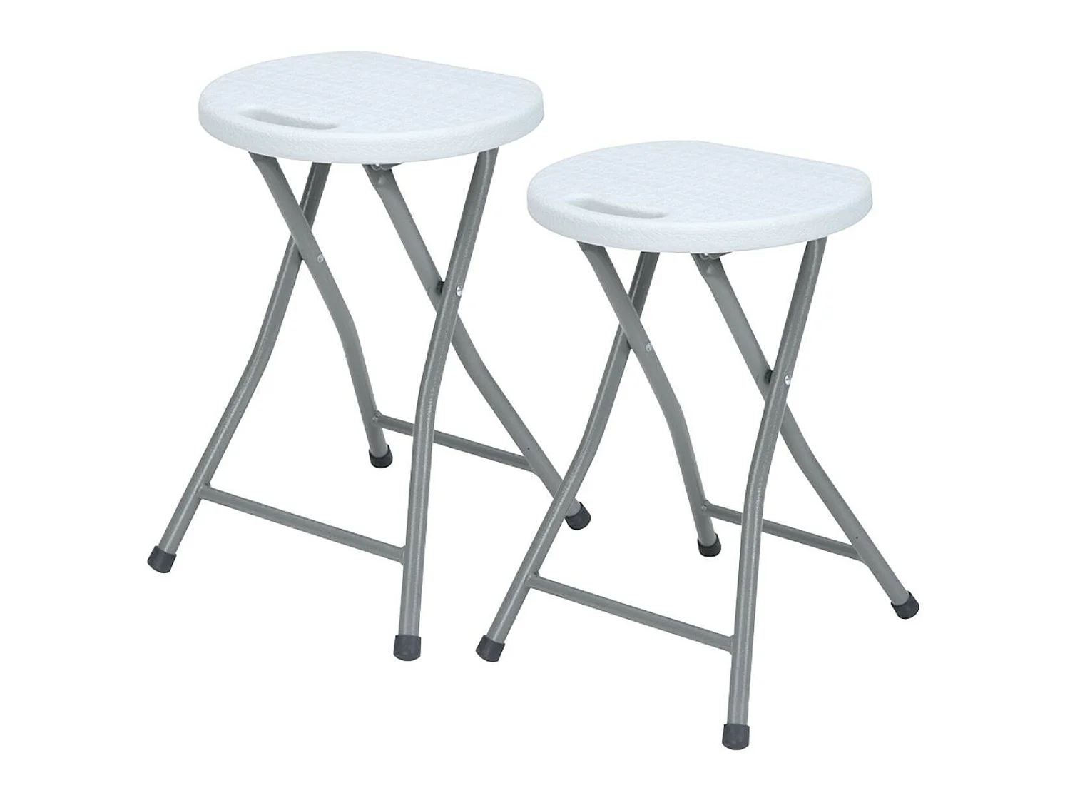 Pack 2 Tabourets Pliants Résine et Acier 31x45cm Blanc 7house