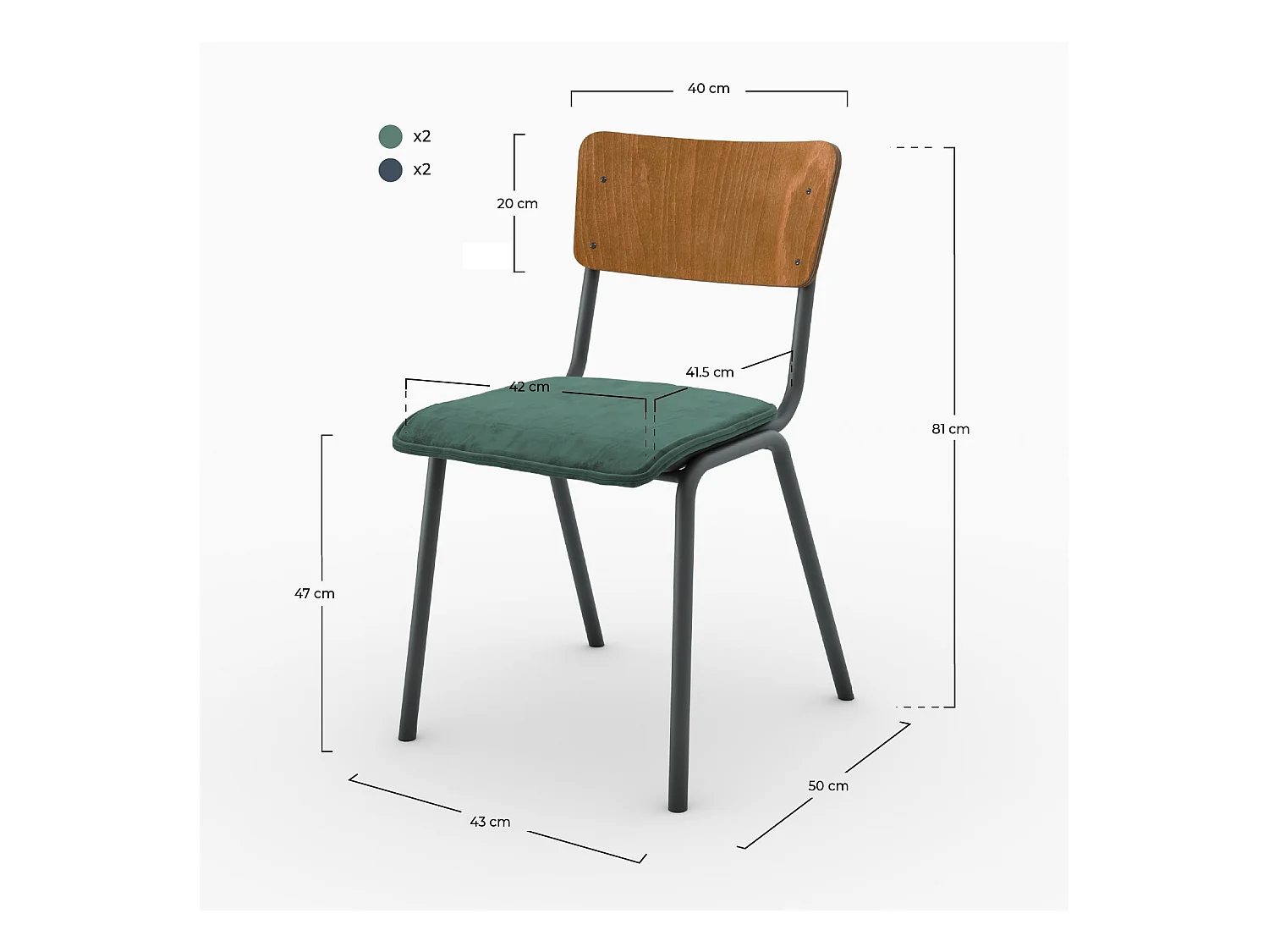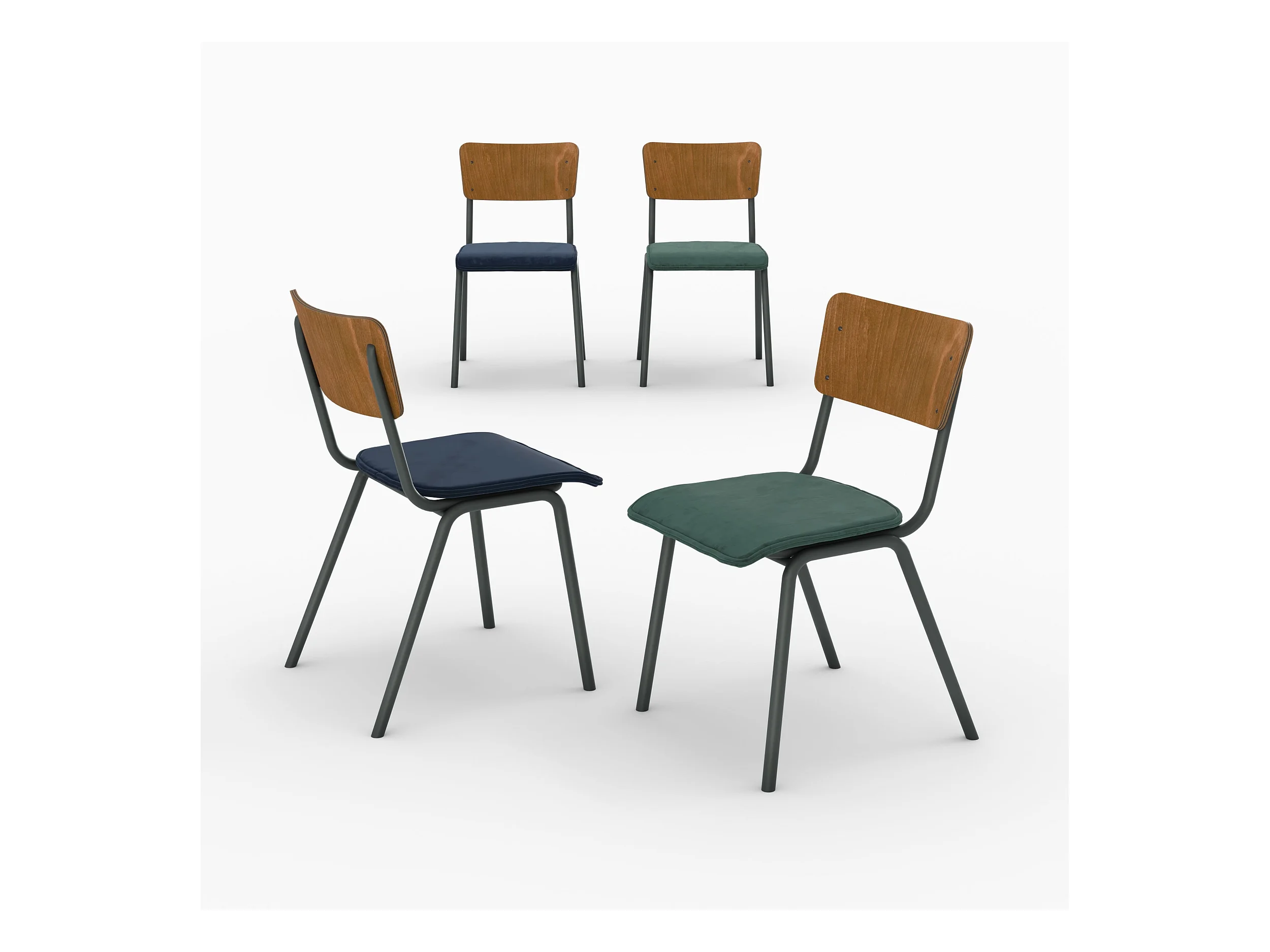 Pack 4 chaises en velours bleu et vert - Nico