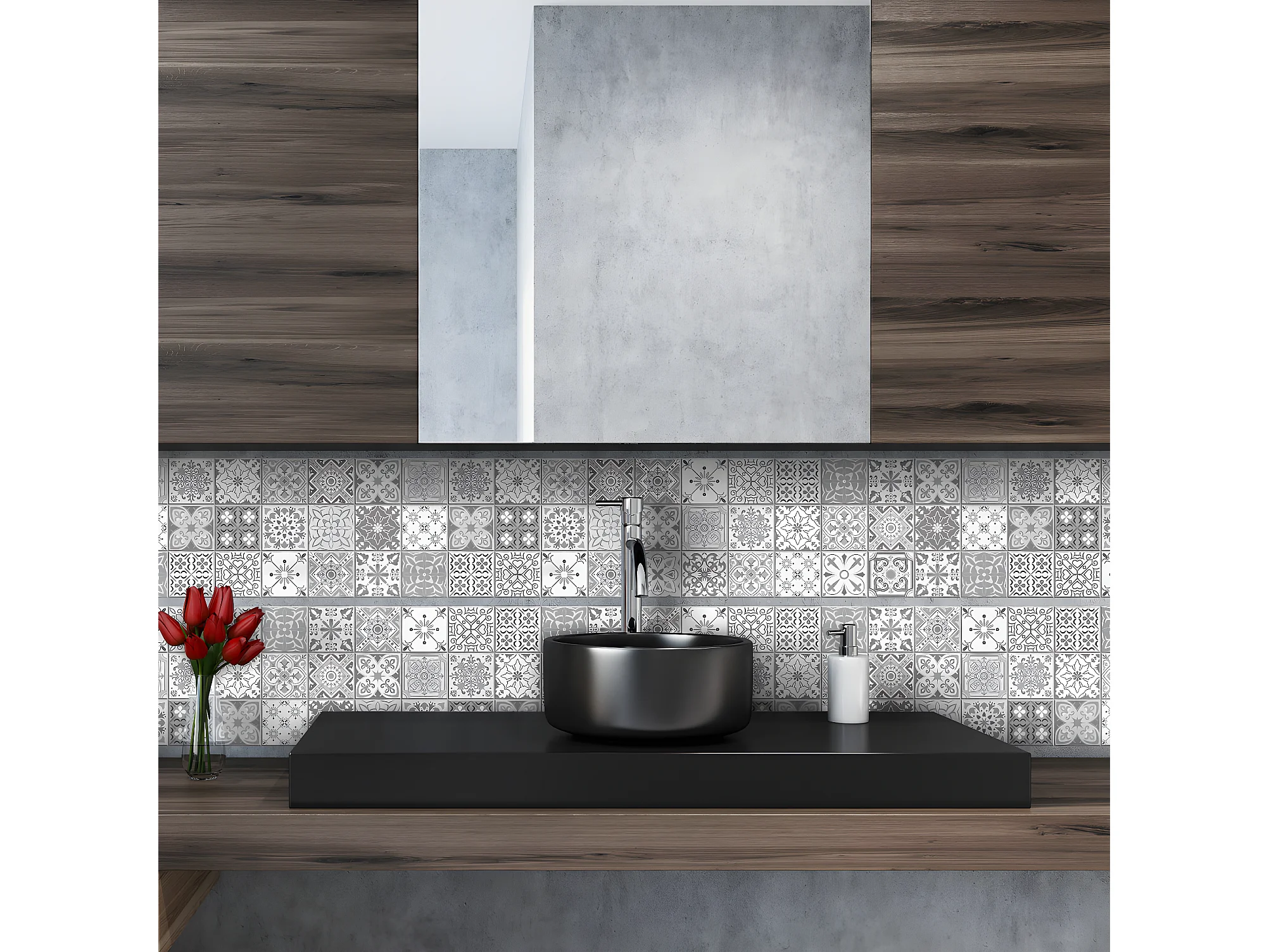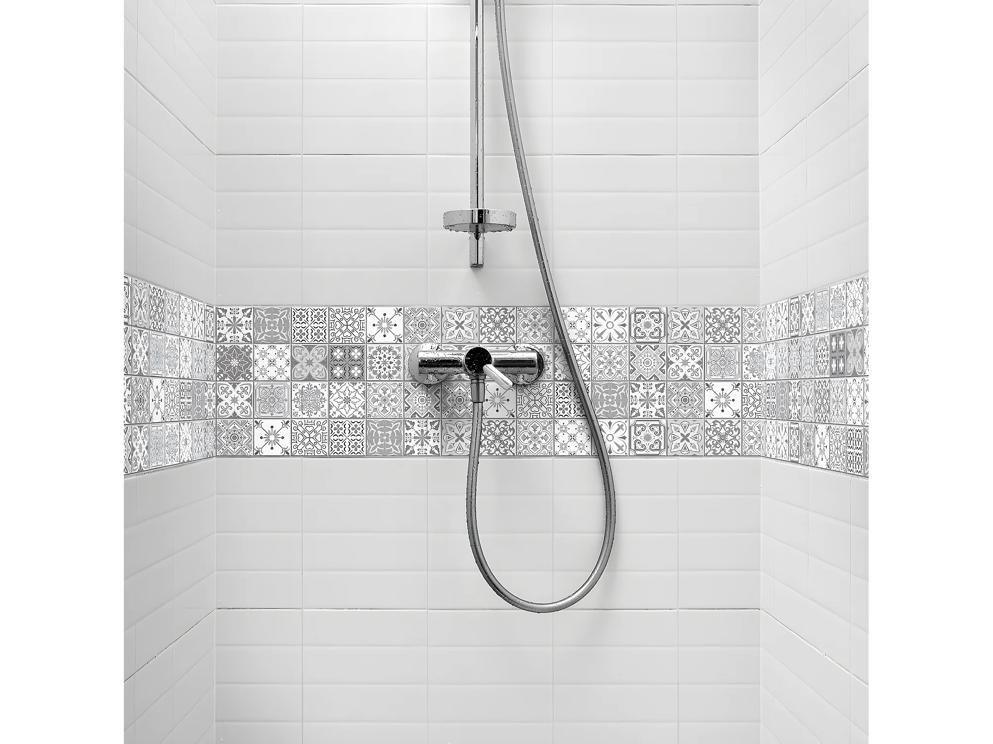 Pack 6 stickers adhésifs frises carrelages | Autocollant Frises Mosaïque Carreaux de ciment - NUANCE DE GRIS LIA - 6 frises de 20 x 120 cm