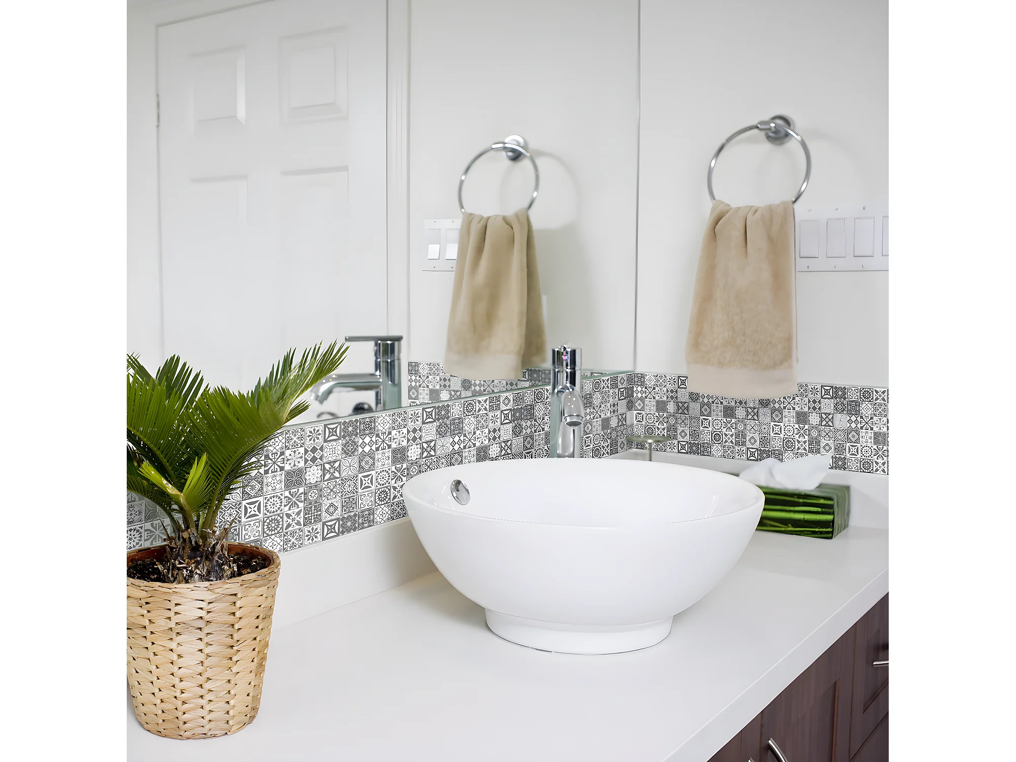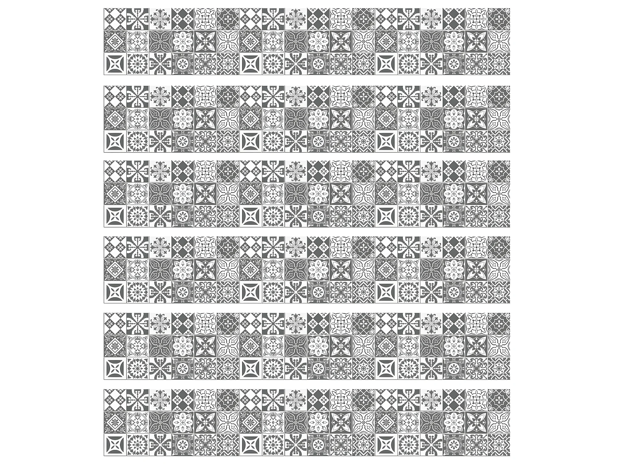 Pack 6 stickers adhésifs frises carrelages | Autocollant Frises Mosaïque Carreaux de ciment - NUANCE DE GRIS ROSO - 6 frises de 20 x 120 cm