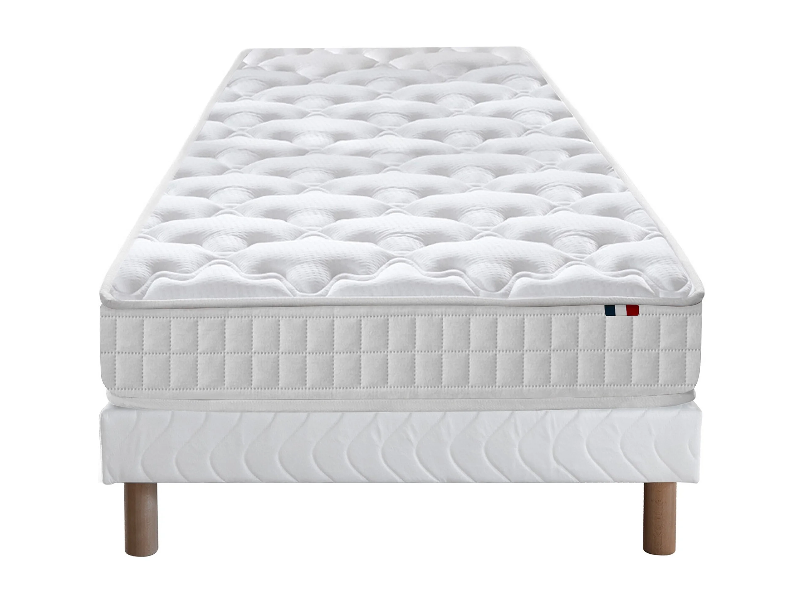 Pack ensemble matelas ressorts ASTRE, sommier, couette et oreillers Dimensions - 90 x 190 cm, Sommier - Blanc