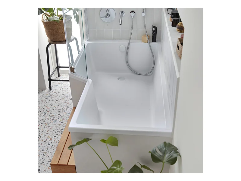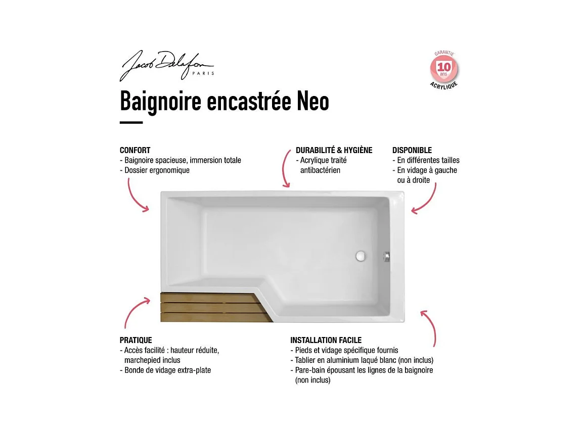 Pack baignoire bain douche 160 x 90 JACOB DELAFON Neo version gauche + tablier + pare bain chromé