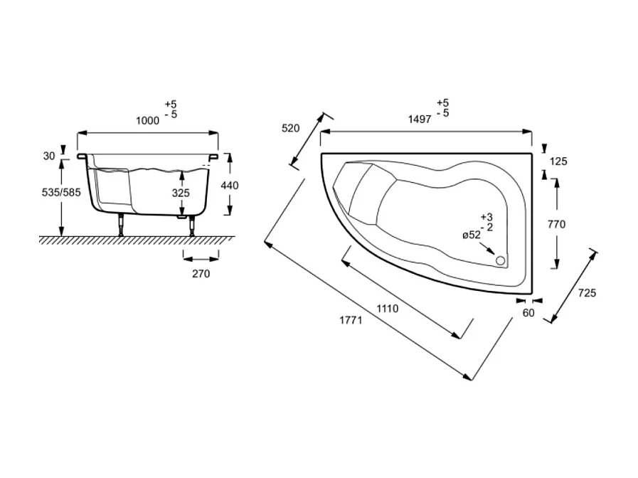 Pack baignoire d'angle 150 x 100 cm JACOB DELAFON Micromega Duo version droite + tablier de baignoire + pare bain
