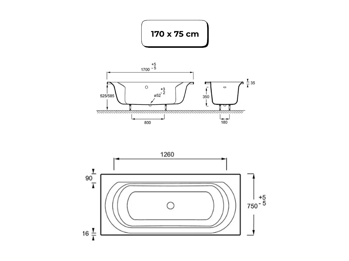 Pack baignoire droite 170 x 75 JACOB DELAFON Elise + mitigeur bain douche noir mat + pare bain noir mat + vidage