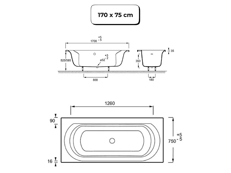 Pack baignoire droite 170 x 75 JACOB DELAFON Elise + tablier niche + pommeau et mitigeur bain noir Aimé + pare bain noir + vidage noir