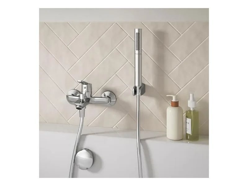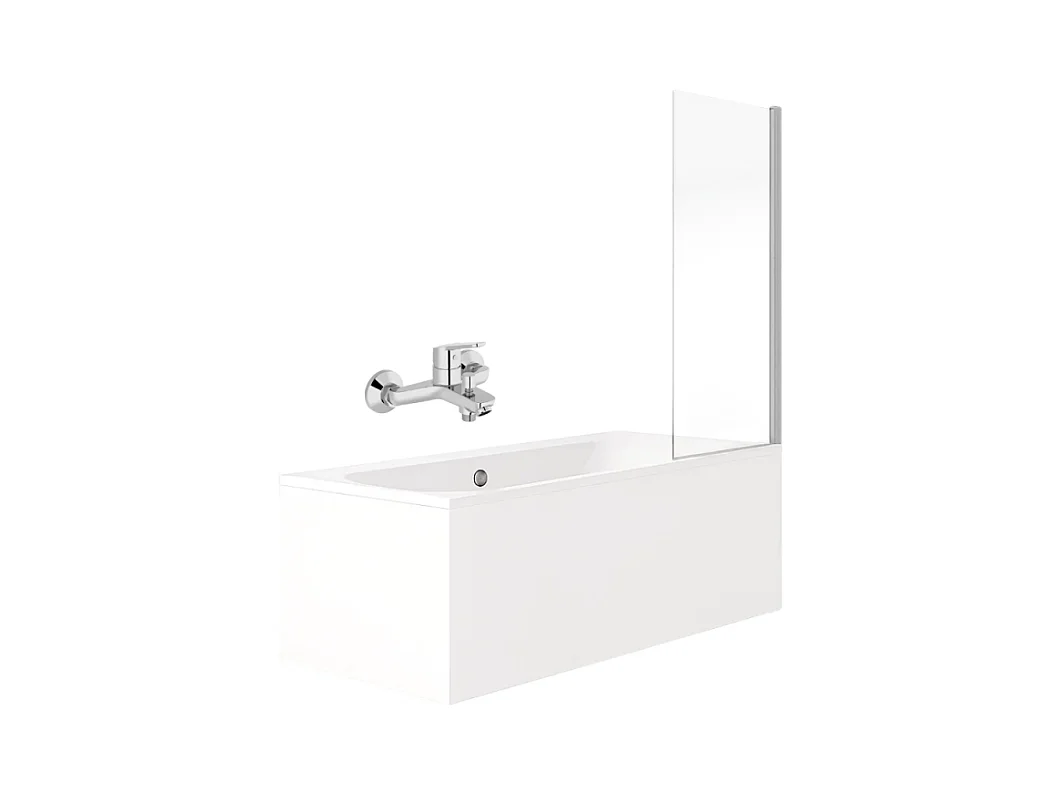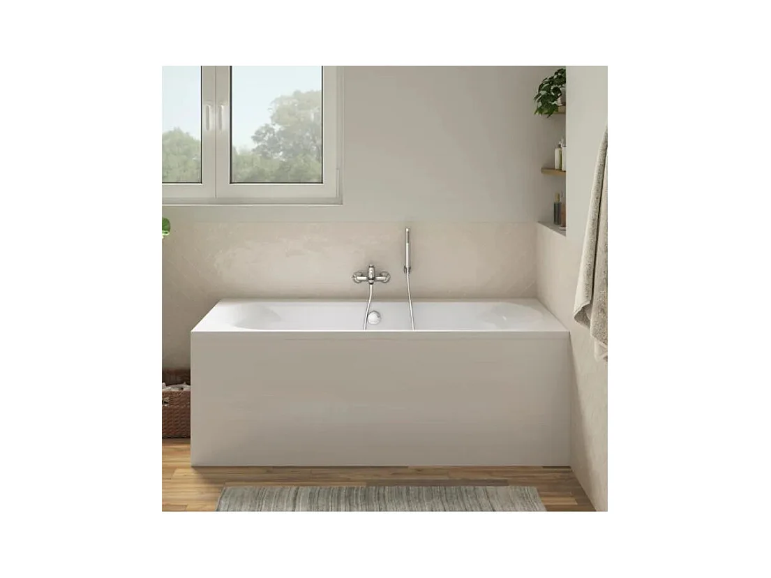 Pack baignoire droite 180 x 80 JACOB DELAFON Elise + tablier angle + mitigeur bain Aimé chromé + pare bain chromé + vidage