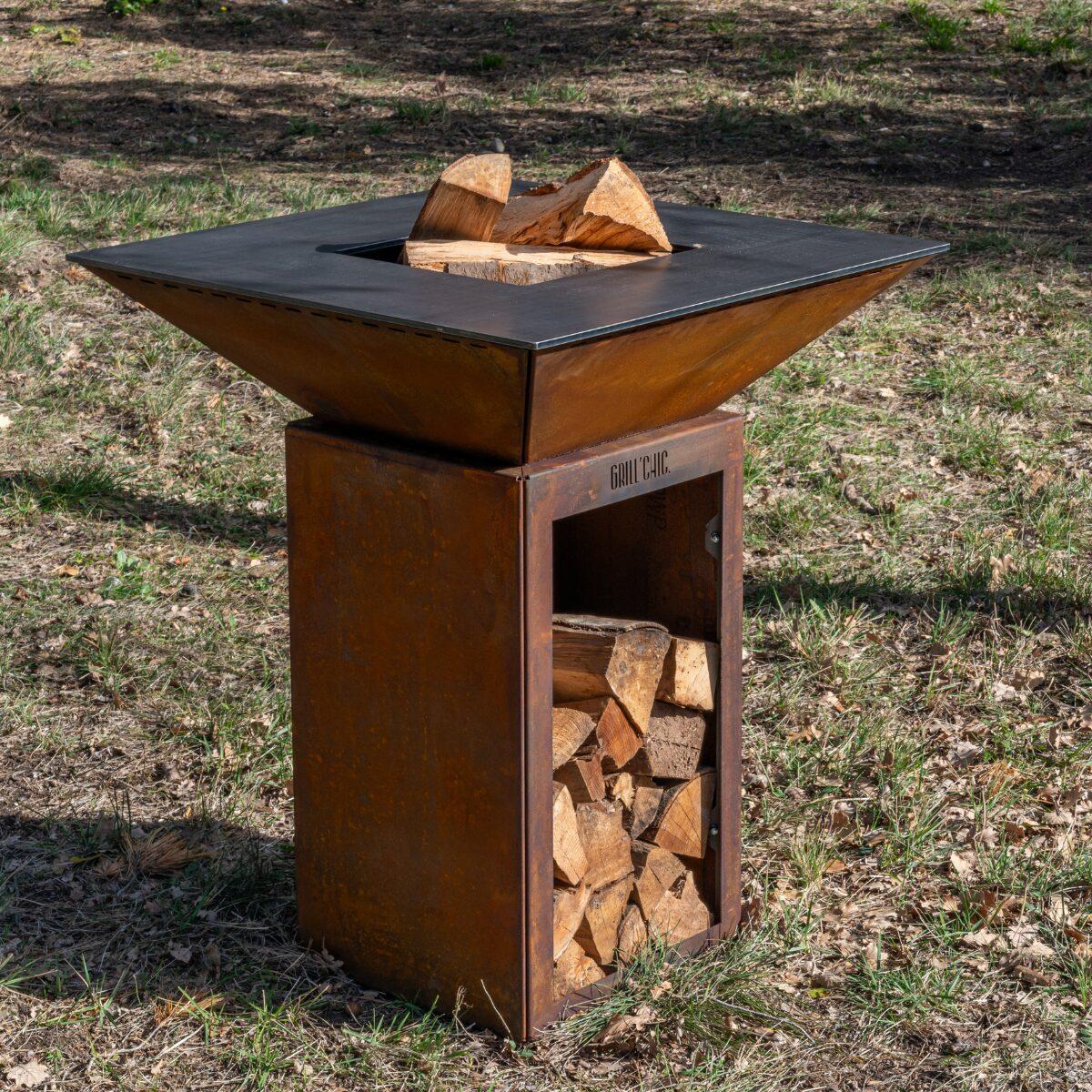 Pack Brasero Printemps CEVENOL Simple Cuve Acier Corten 74x90cm - Sans rangement bois - Un brasero carré au style authentique et naturel pour vos soirées en plein