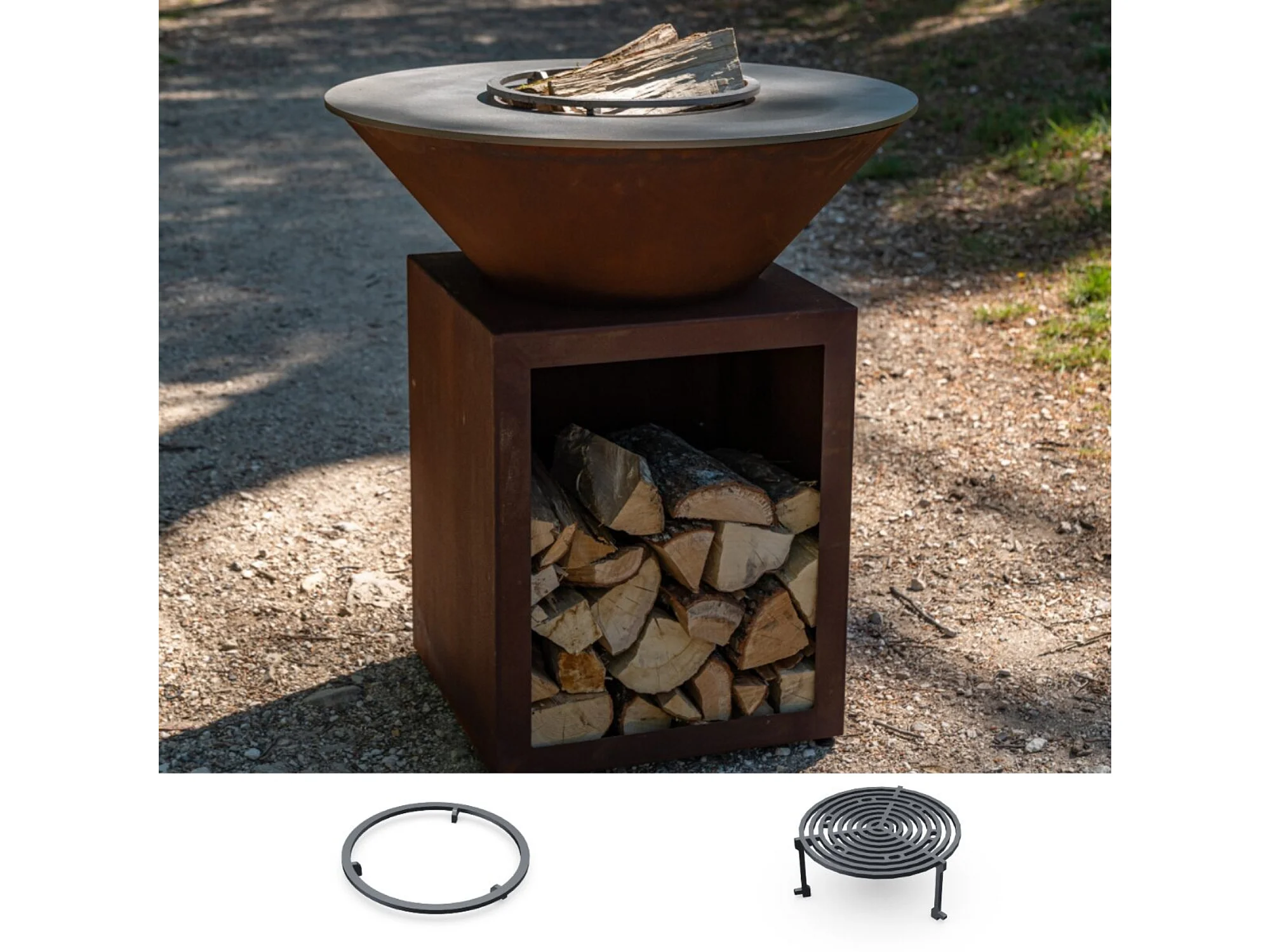 Pack Printemps Brasero Plancha Barbecue Classique Corten Simple Cuve 103x90cm - Un brasero classique en acier Corten pour des soirées chaleureuses et authentiques