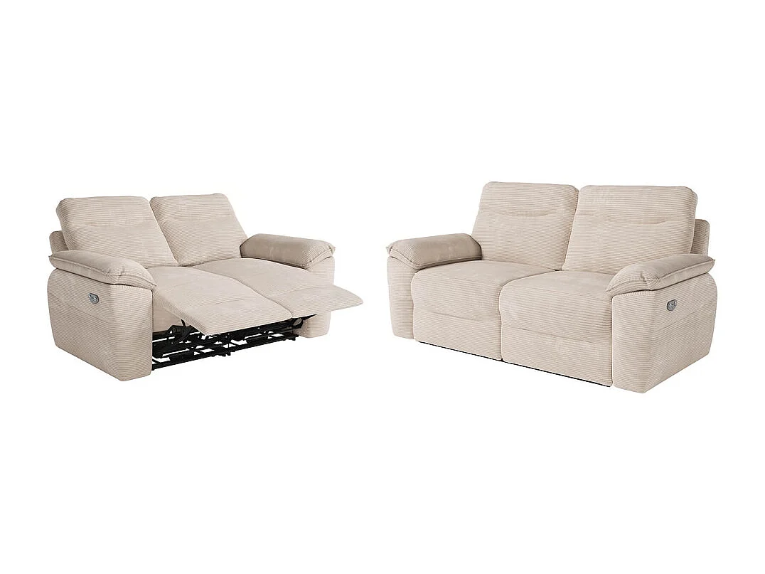 PACK - Canapé de relaxation ROSS électrique 2 et 3 places en velours côtelé - Beige