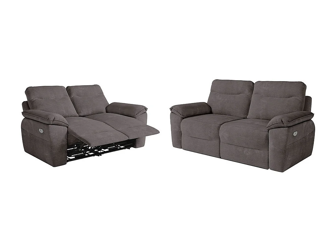 PACK - Canapé de relaxation ROSS électrique 2 et 3 places en velours côtelé - Gris