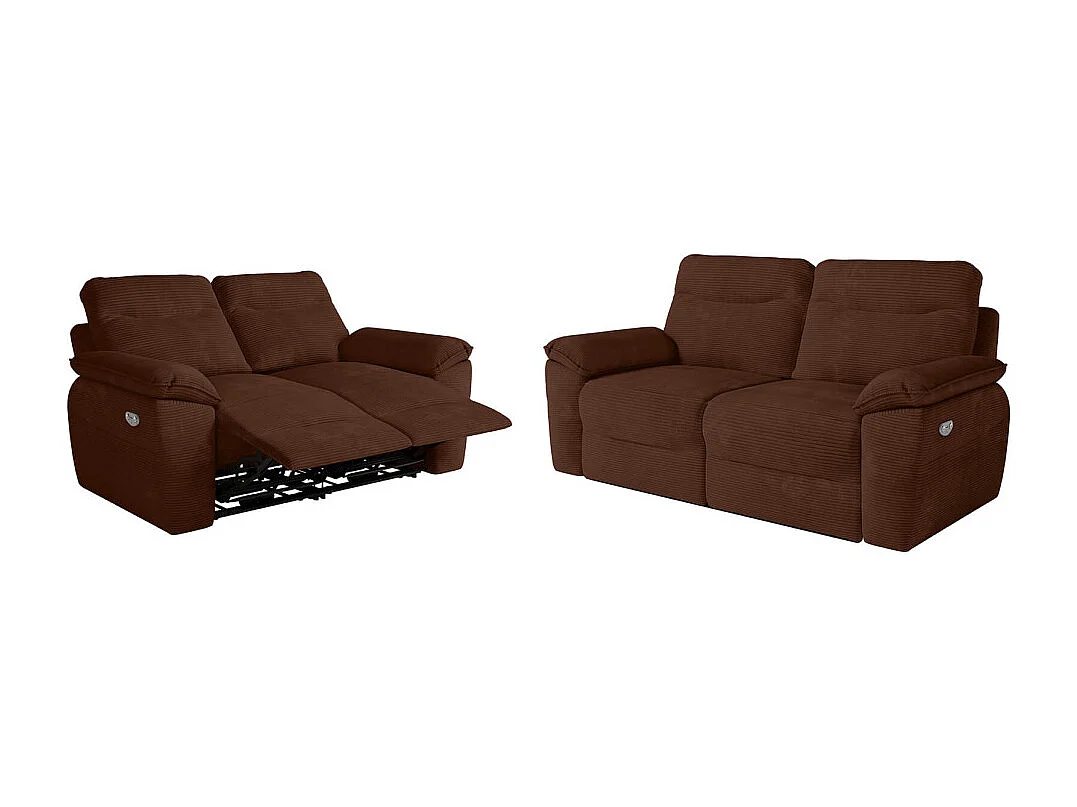 PACK - Canapé de relaxation ROSS électrique 2 et 3 places en velours côtelé - Marron