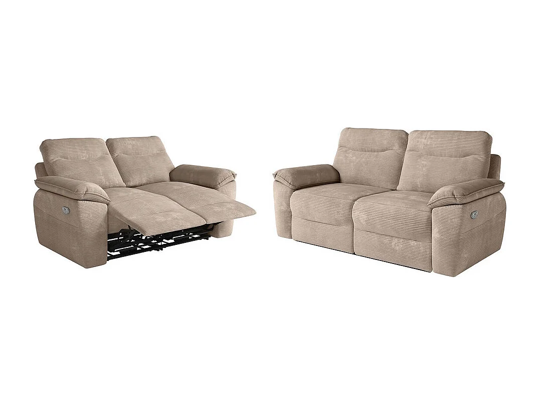 PACK - Canapé de relaxation ROSS électrique 2 et 3 places en velours côtelé - Taupe