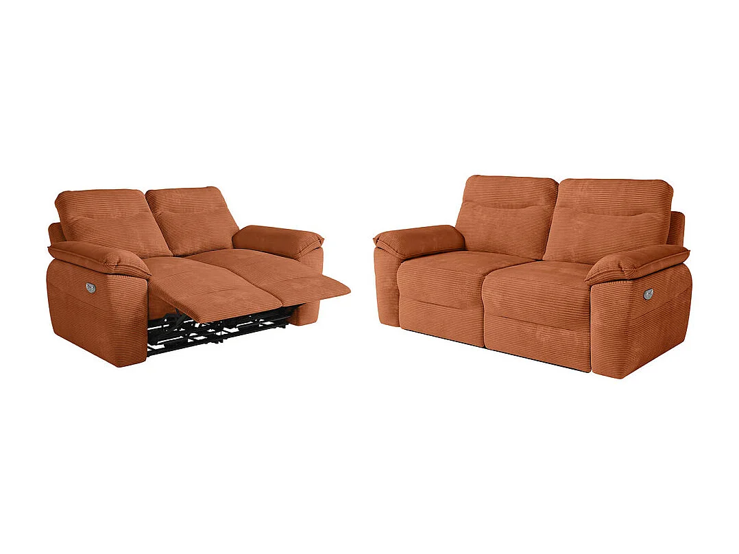 PACK - Canapé de relaxation ROSS électrique 2 et 3 places en velours côtelé - Terracotta