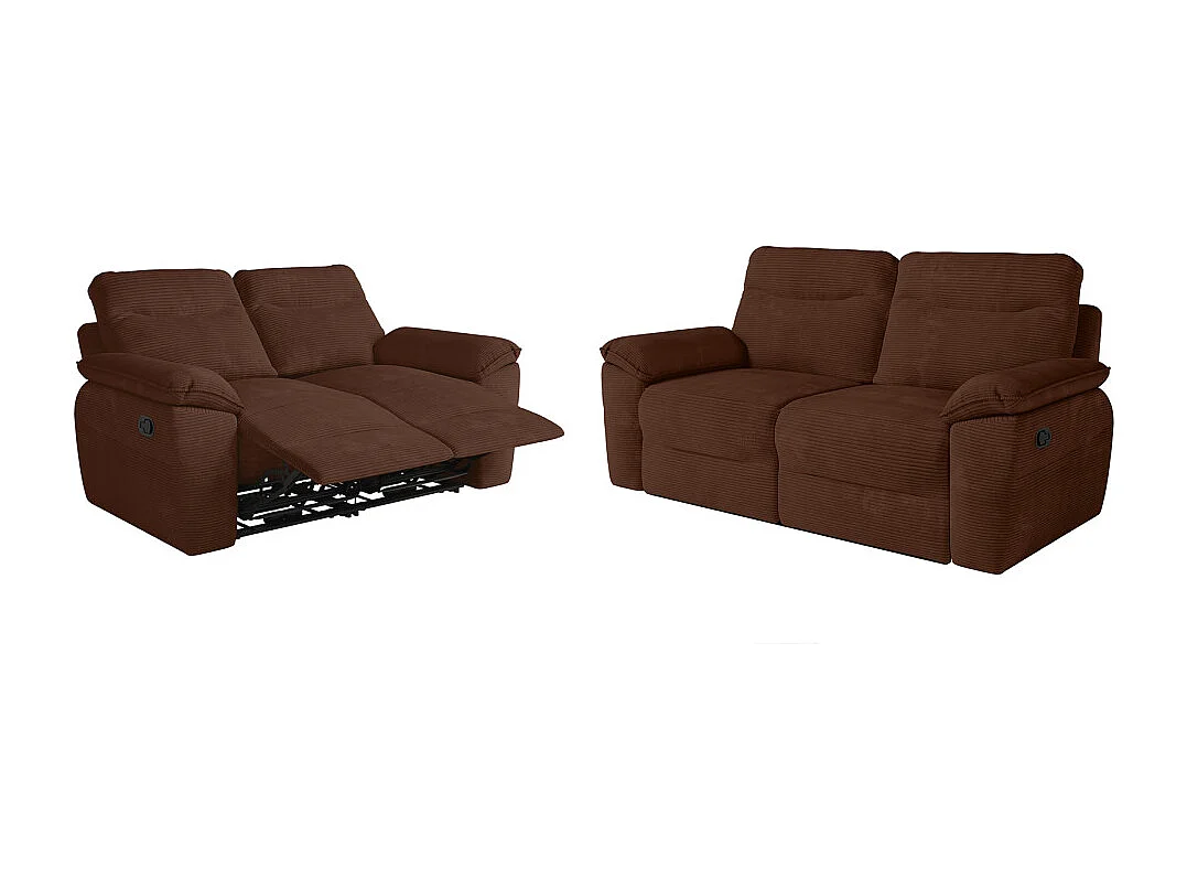 PACK - Canapé de relaxation ROSS manuel 2 et 3 places en velours côtelé - Marron