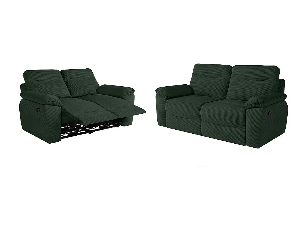 PACK - Canapé de relaxation ROSS manuel 2 et 3 places en velours côtelé - Vert foncé