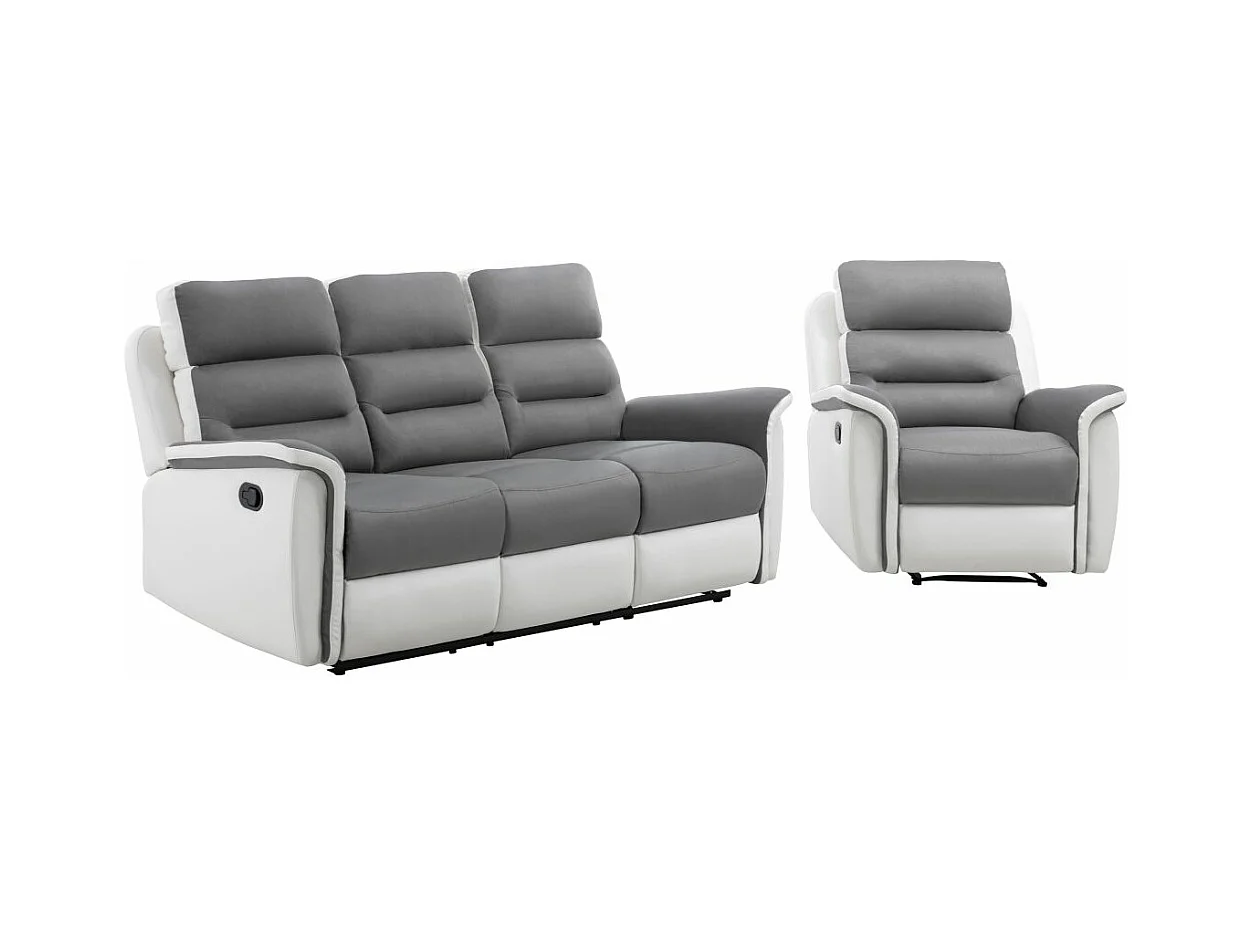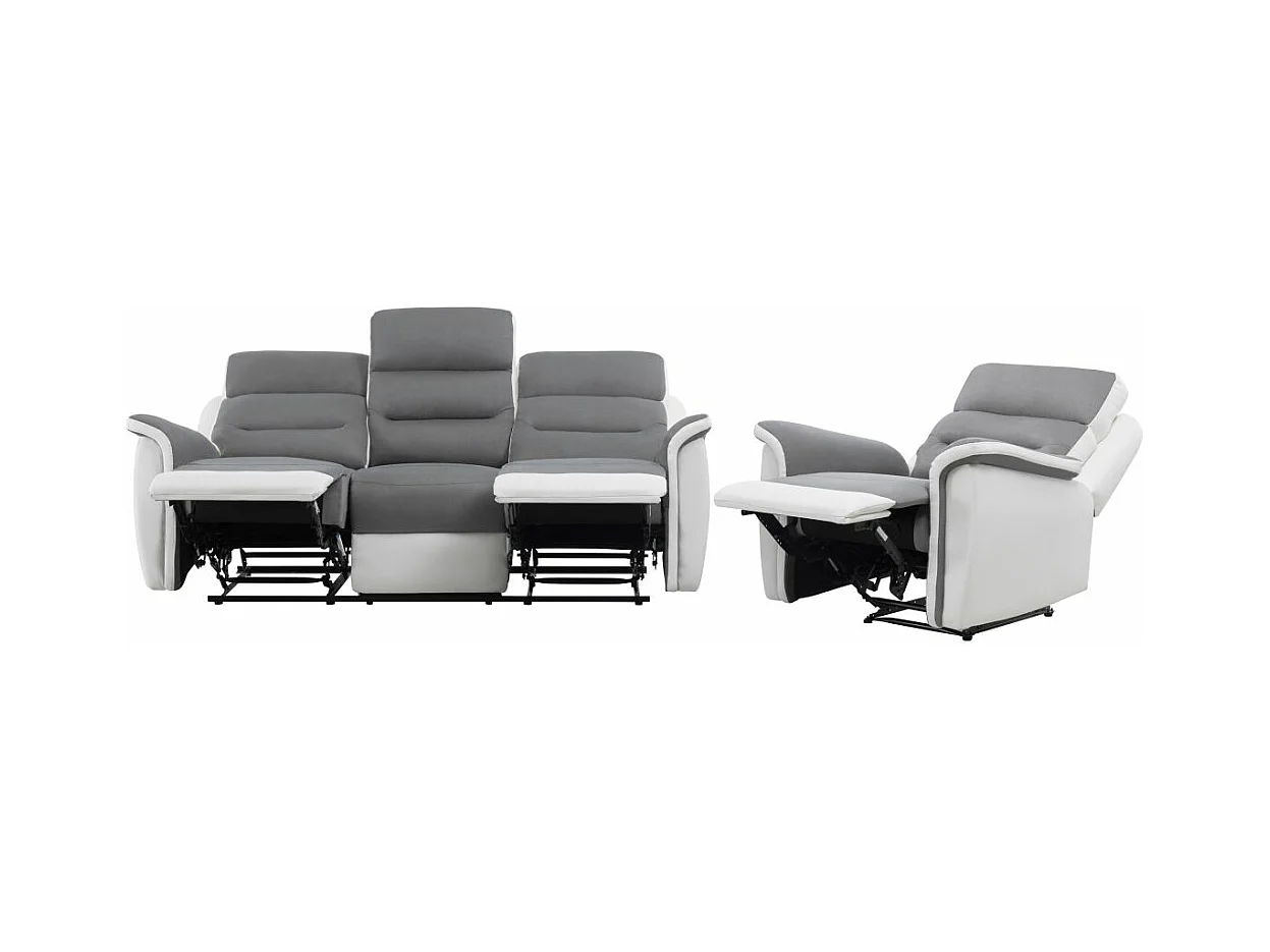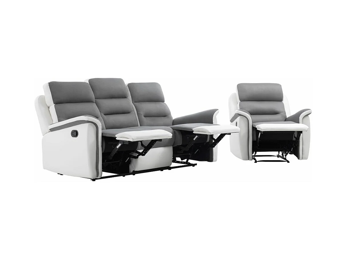 Canapé relax 3 places et 1 fauteuil Léon en PU Blanc et MF Gris - Loungitude