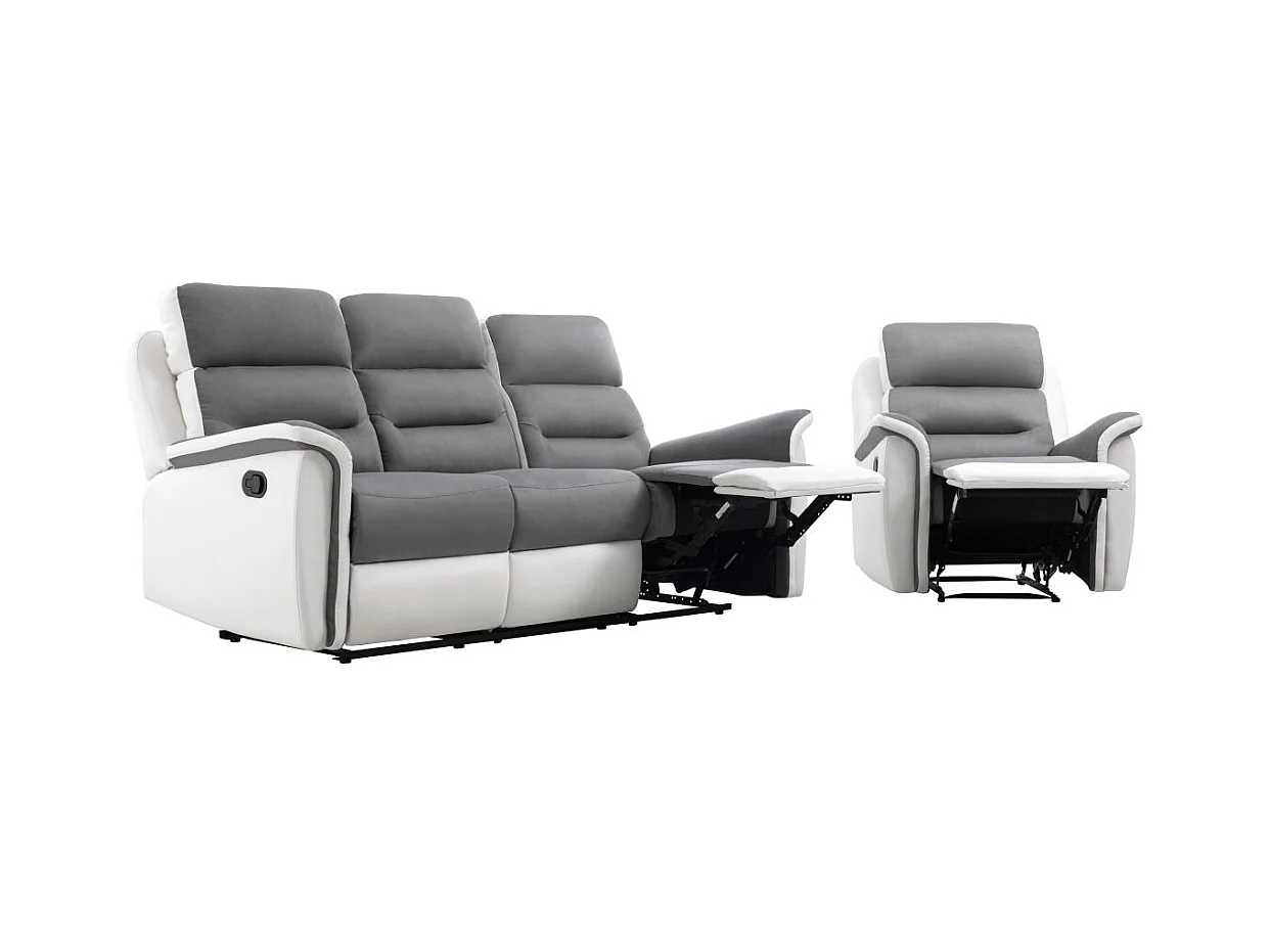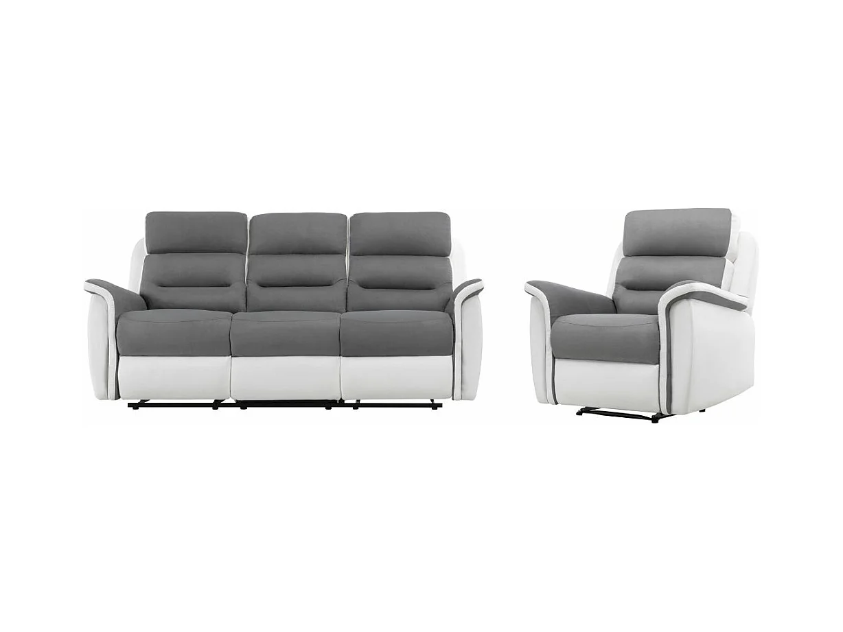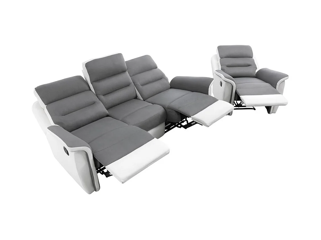 Canapé relax 3 places et 1 fauteuil Léon en PU Blanc et MF Gris - Loungitude