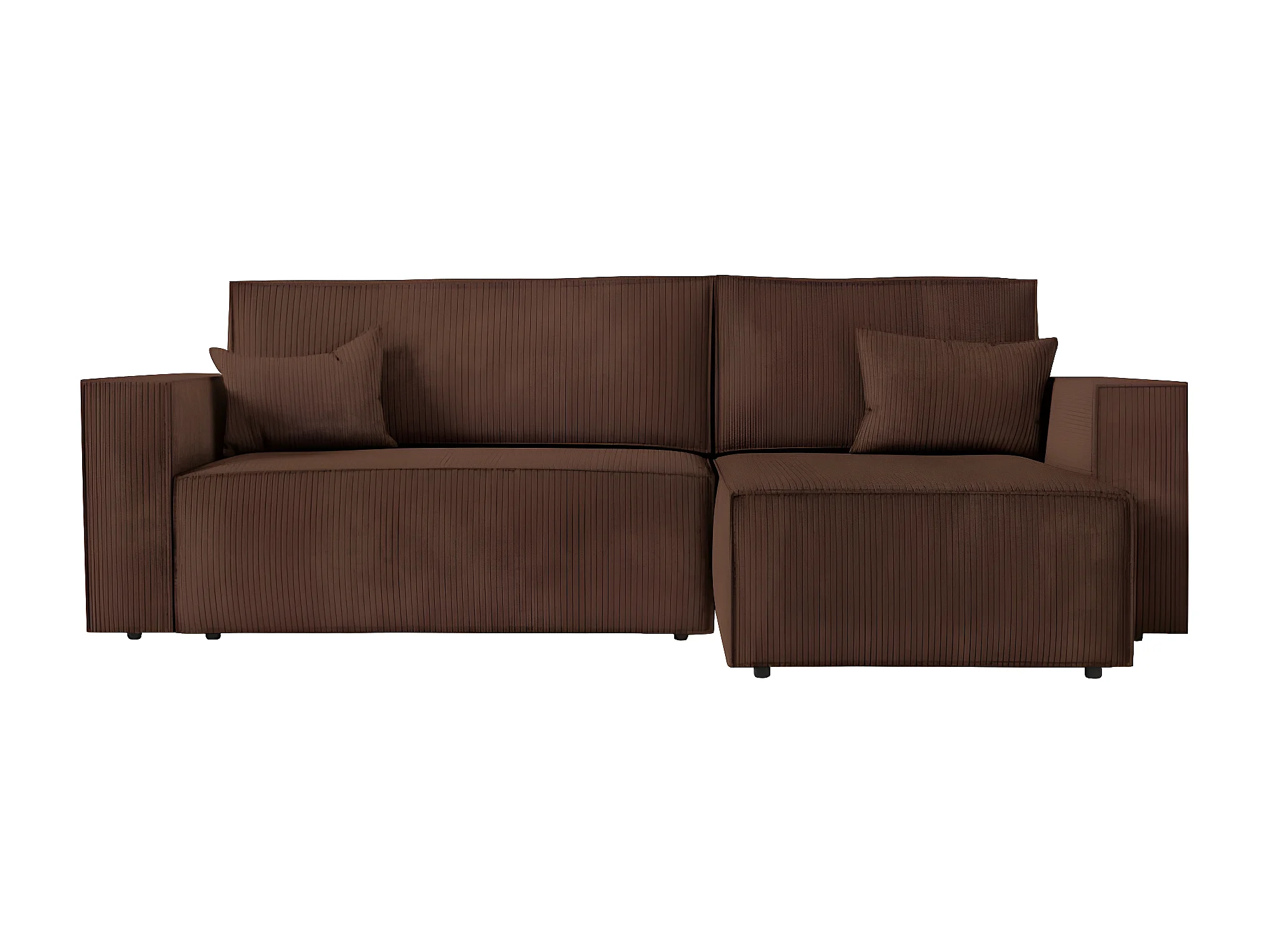 Pack - Clarisse - Canapé d'angle convertible réversible avec pouf en velours côtelé - Marron - L269 x P159 x H89cm - Loungitude