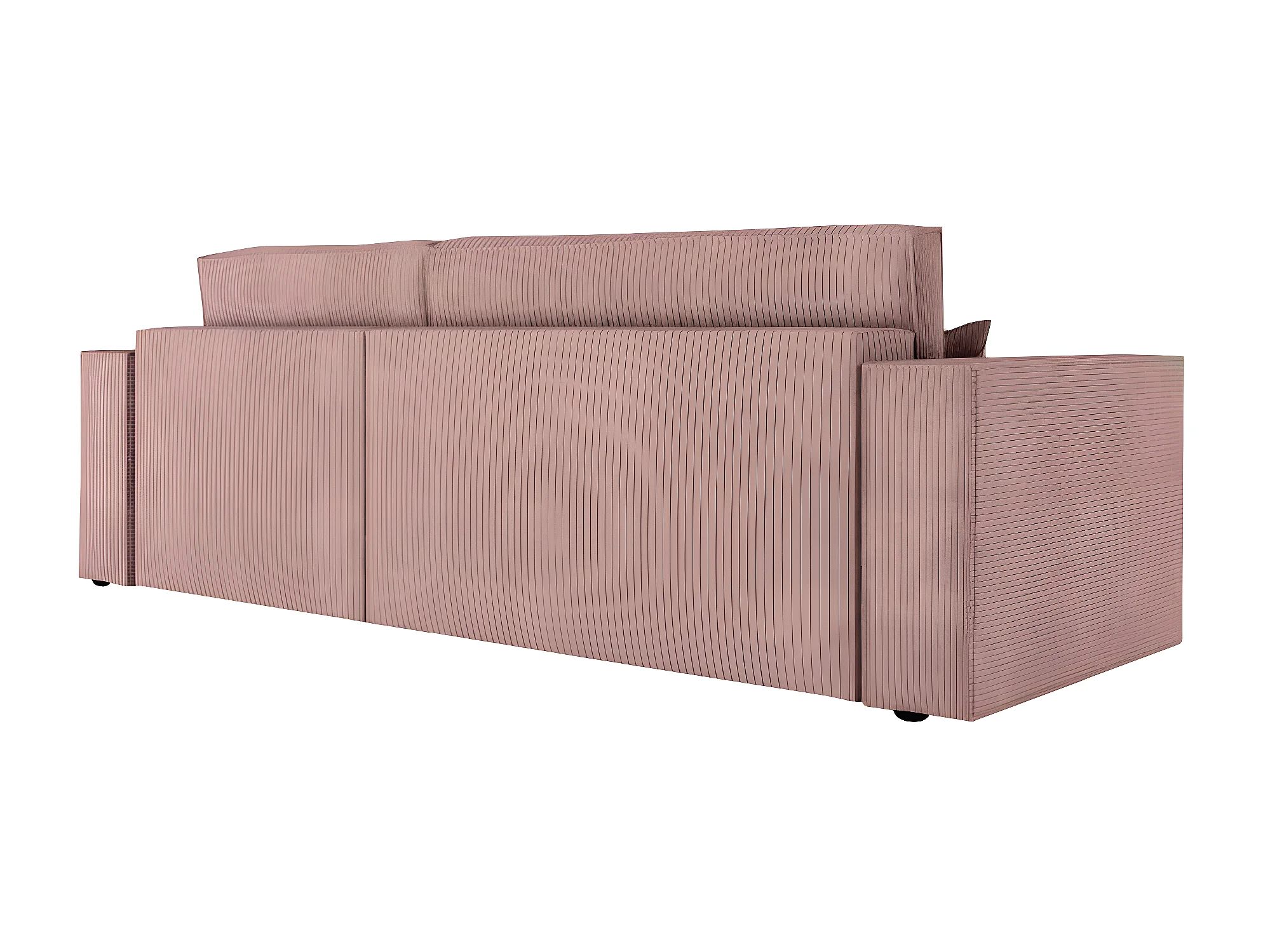 Pack - Clarisse - Canapé d'angle convertible réversible avec pouf en velours côtelé - Vieux rose - L269 x P159 x H89cm - Loungitude