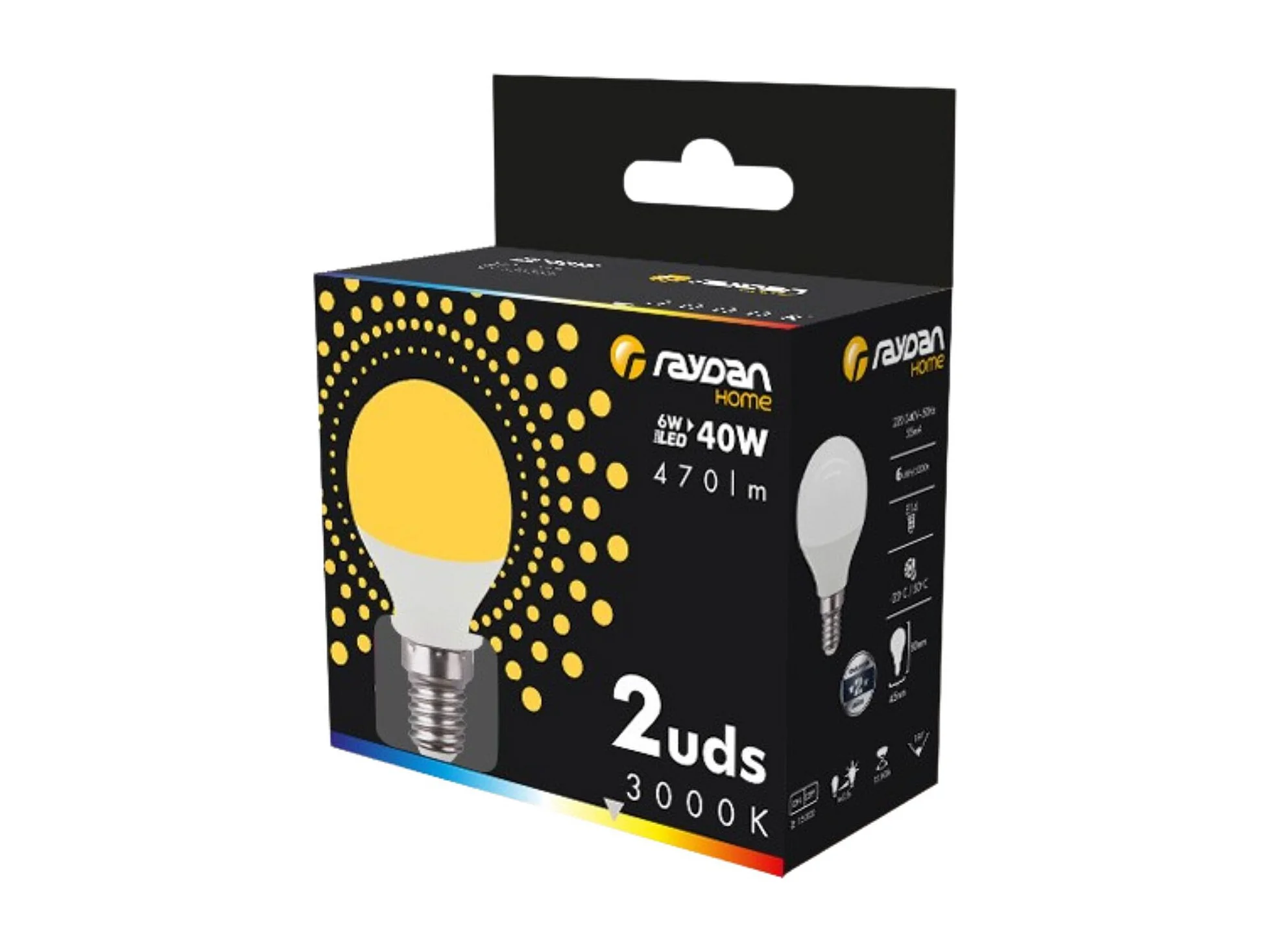 Pack de 2 Ampoules LED Sphériques E14 6W Equi.40W 470lm 15000H Raydan Home