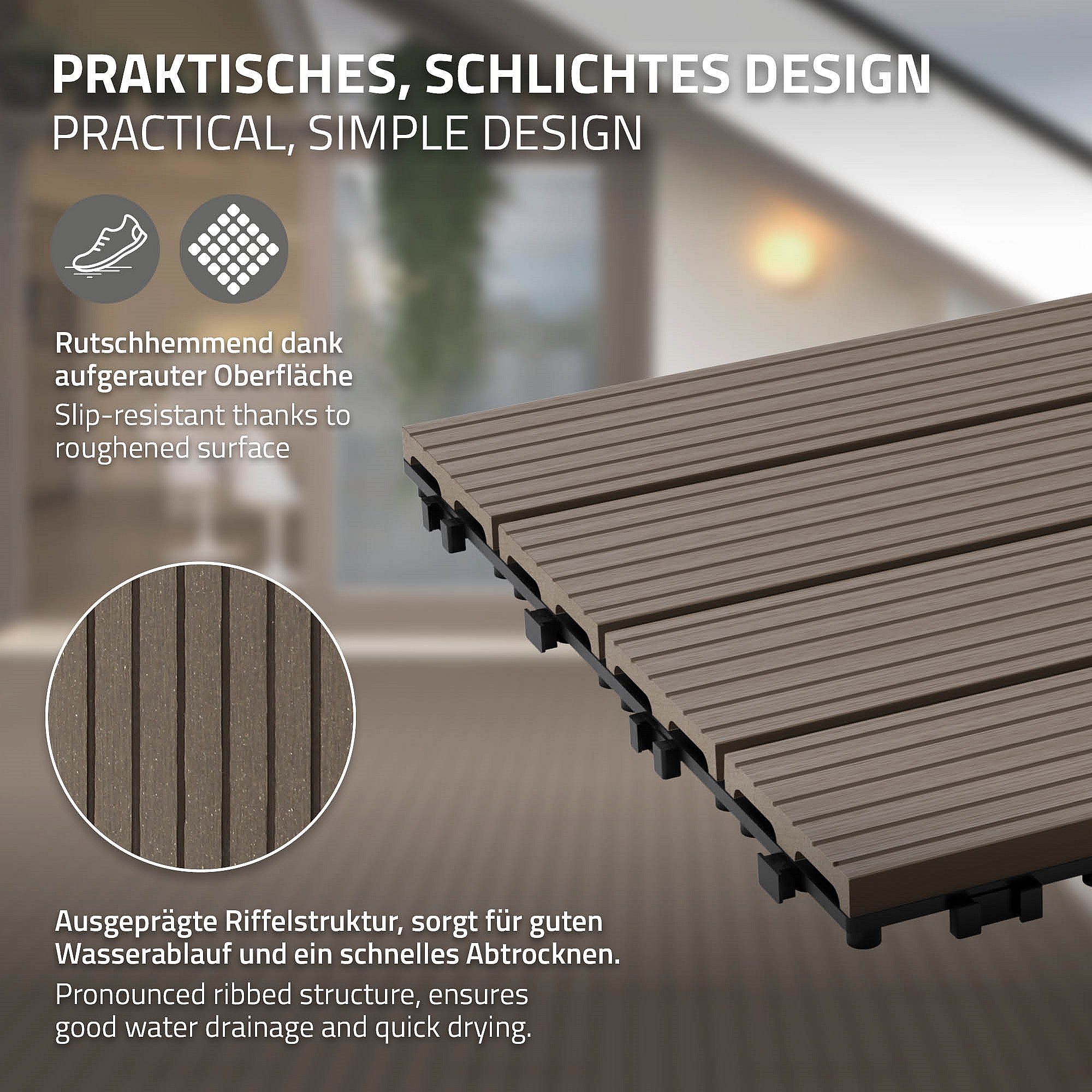 ECD Germany WPC Carreaux 30x30 cm - 33 Pièces par 3m² - avec Aspect Bois - Marron Foncé - Dalles