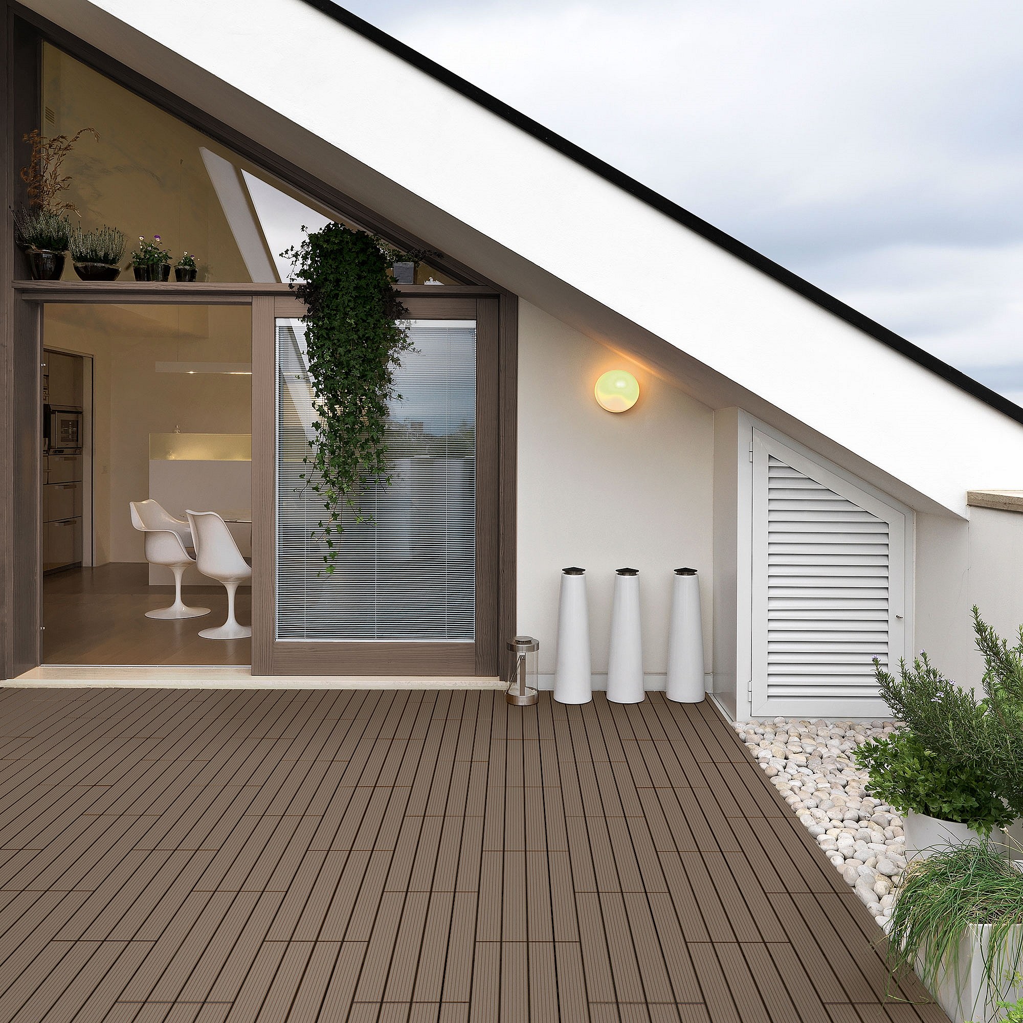 ECD Germany WPC Carreaux de Terrasse 30x30 cm - 33 Pièces par 3m² - avec Aspect Mosaïque - Marron