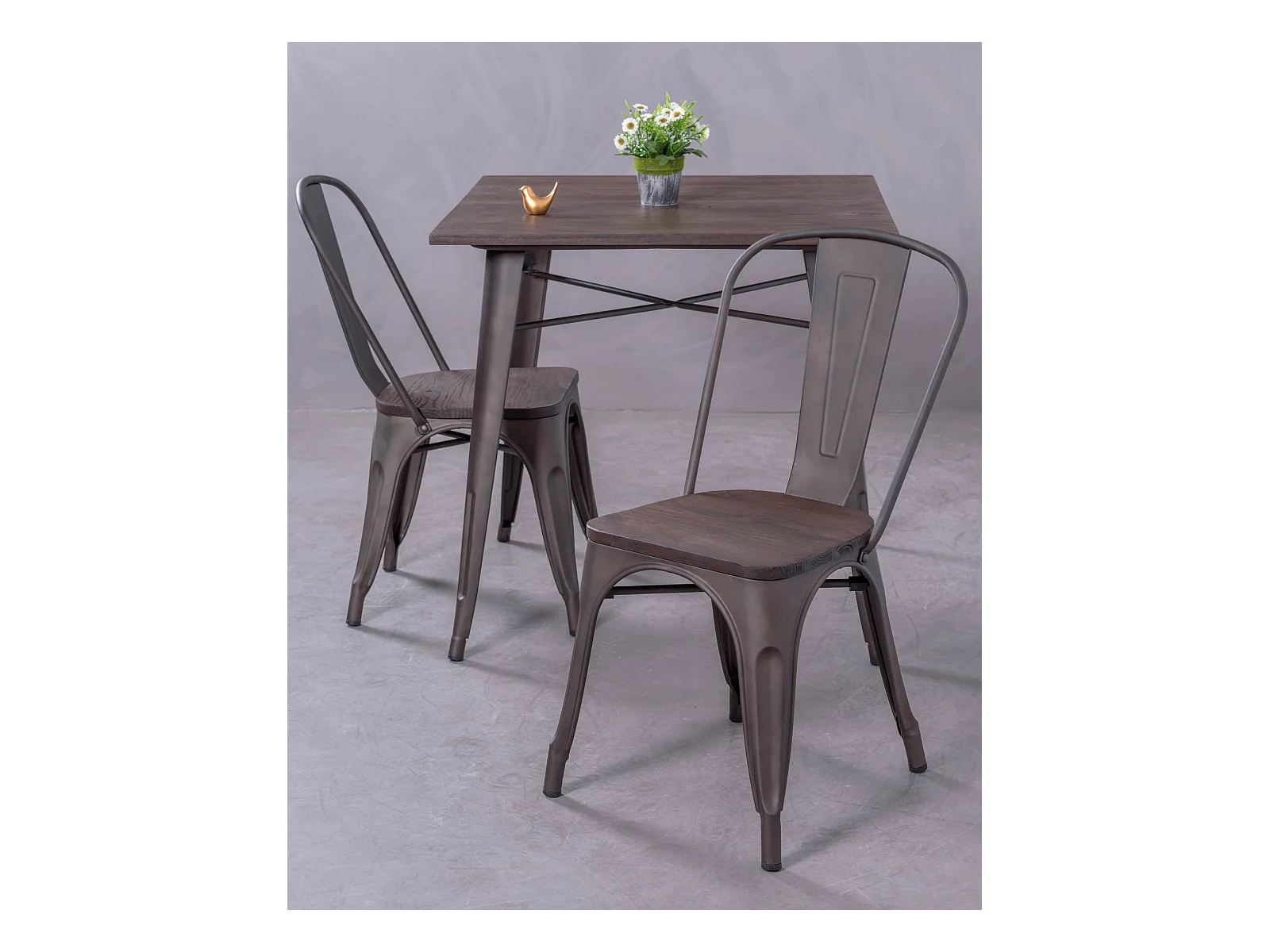 Pack de 4 chaises en métal avec assises en bois - Bistro - Antique