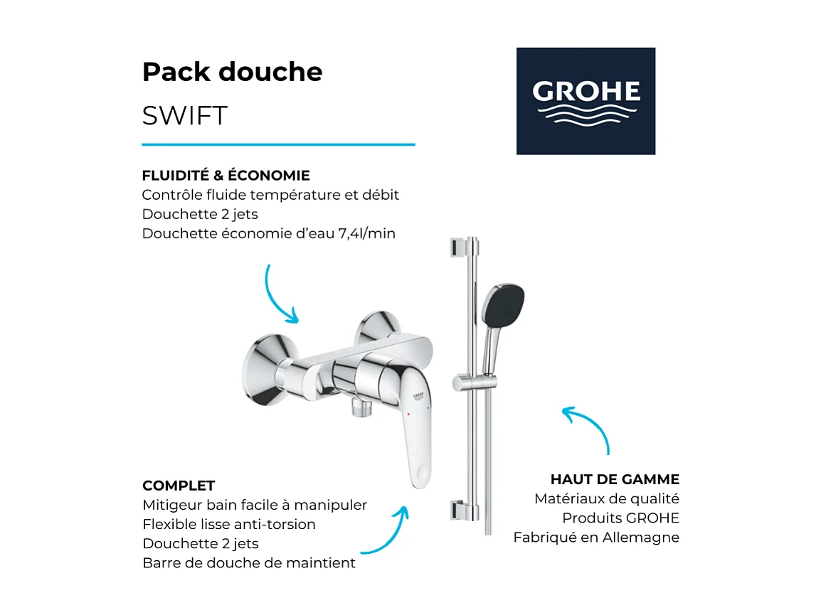 Pack douche mécanique Swift 2023 avec ensemble de douhe Vitalio Comfort 110