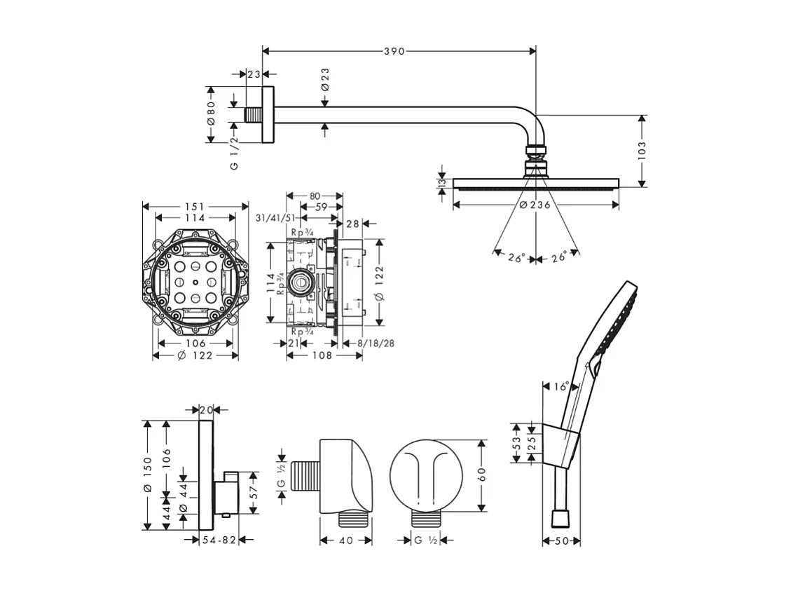 Pack encastré avec mitigeur thermostatique HANSGROHE Raindance Ecostat S Noir mat