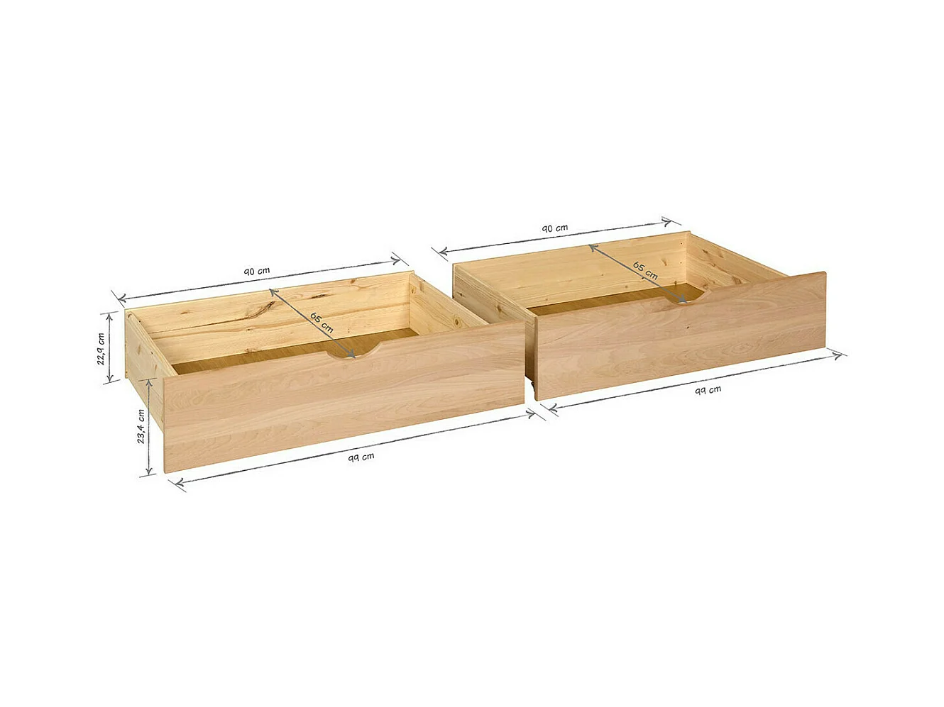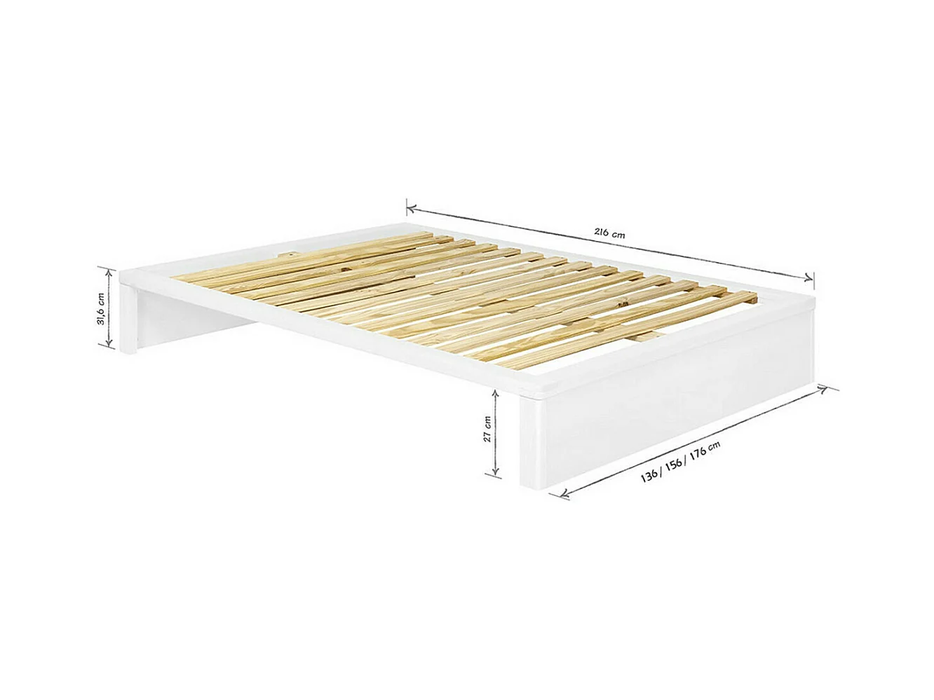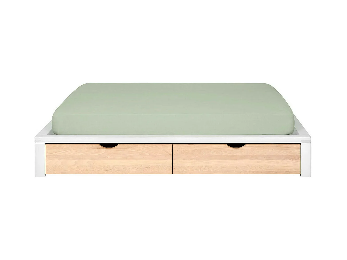 Pack lit avec 2 tiroirs et matelas 140x200 cm bois massif blanc et hêtre GASTON